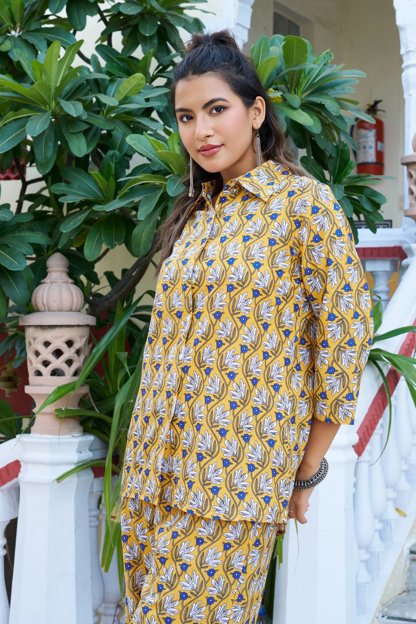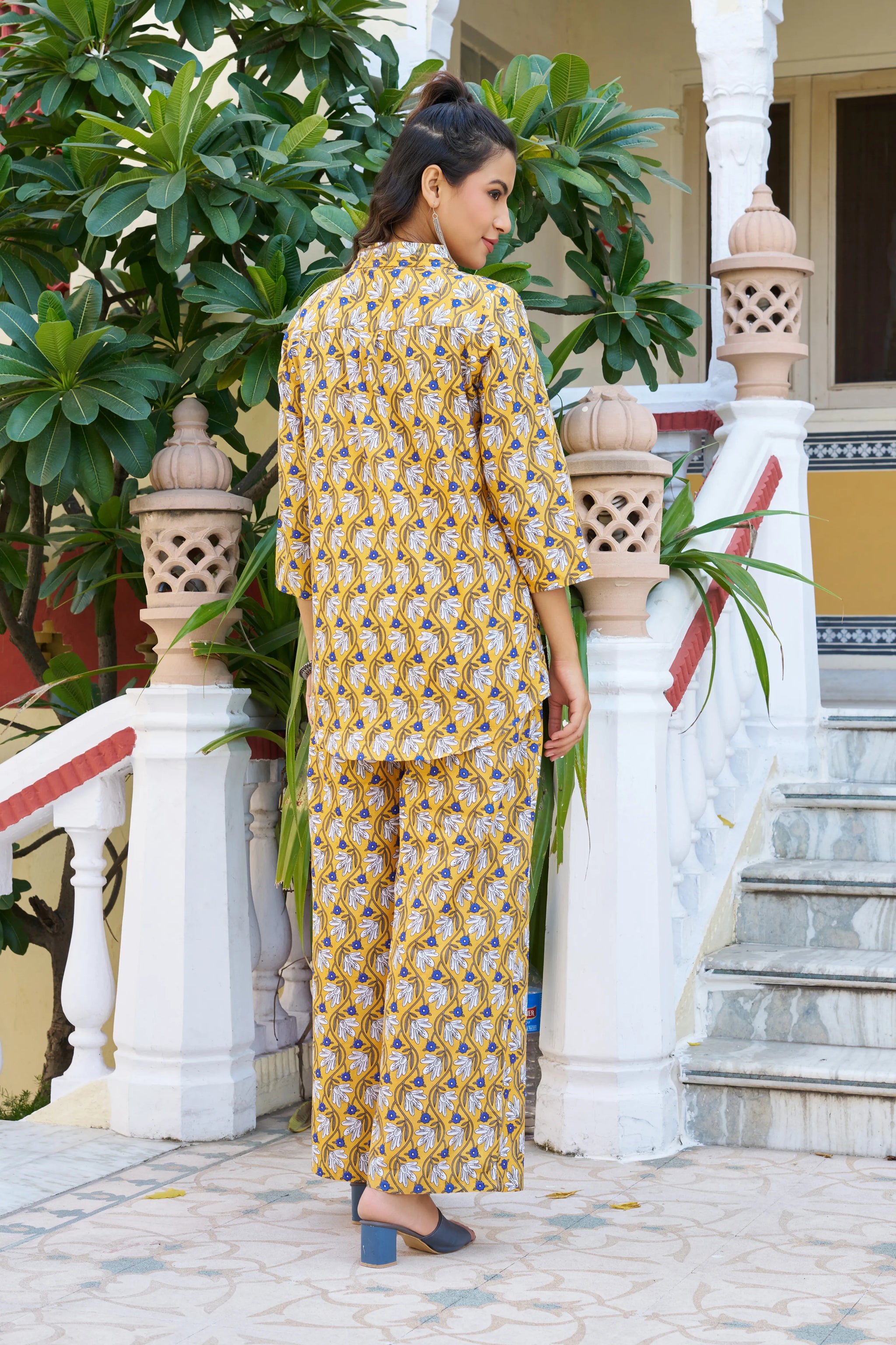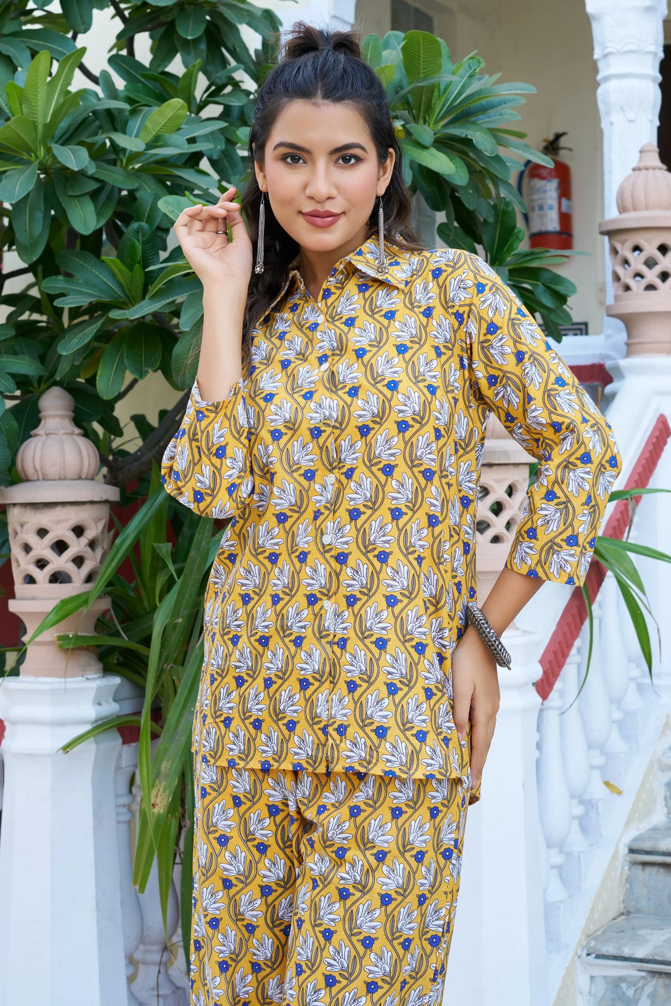 Sunlit Bloom: Yellow Floral Cotton Co-ord Set