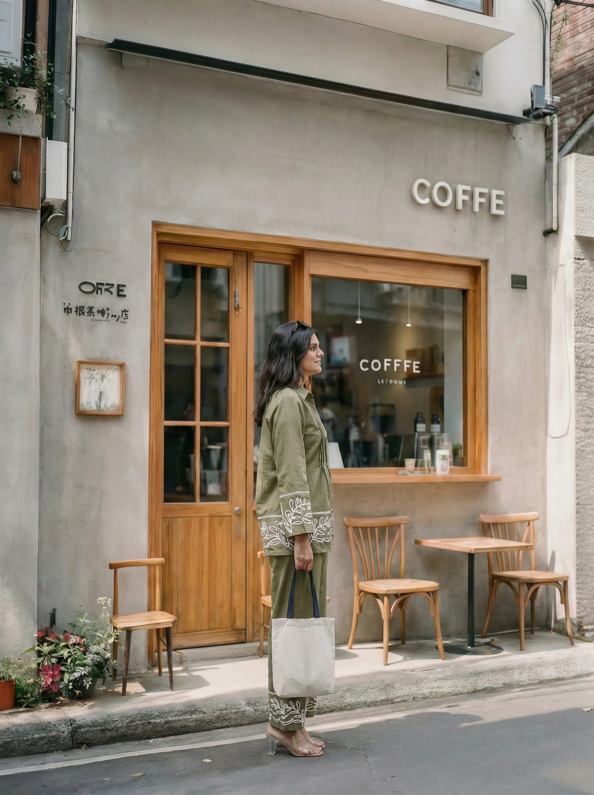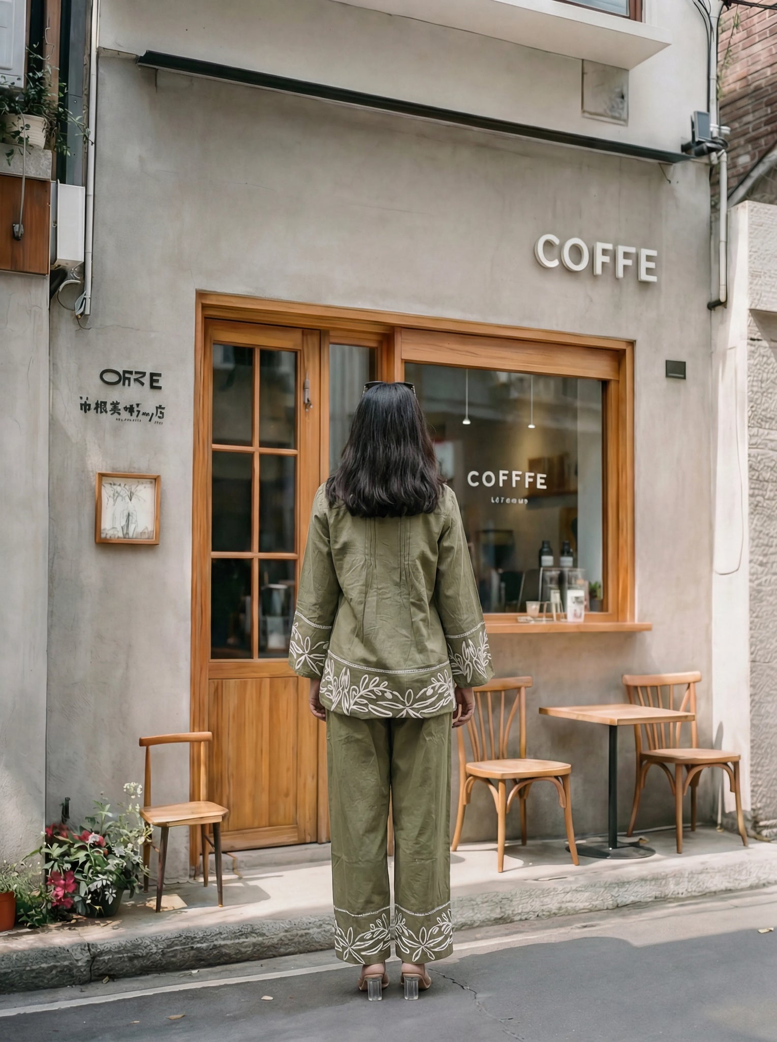 Calm, refined, and effortlessly modern, Sage Serenity Edit is crafted for women who gravitate towards subtle elegance with a contemporary touch. Designed in breathable cotton flex, this co-ord set brings together structure, comfort, and artisanal detailing for a look that feels both relaxed and polished.
