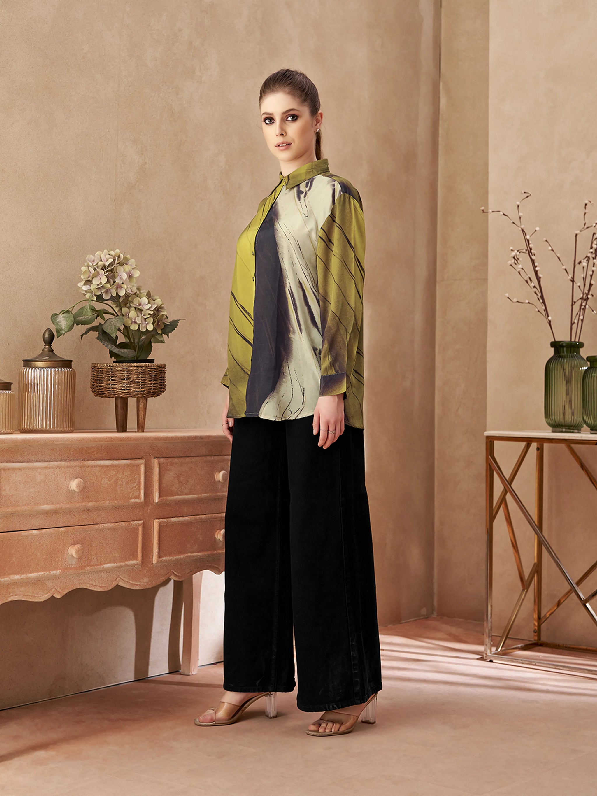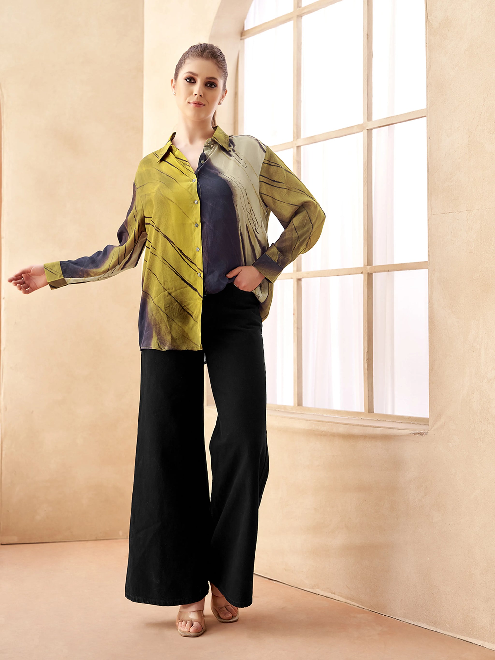 Add an artistic twist to your everyday elegance with Golden Drift, a chic marble-effect printed shirt that exudes effortless sophistication. Crafted in luxurious crepe, this piece blends structure and fluidity, making it perfect for both statement dressing and minimal styling.