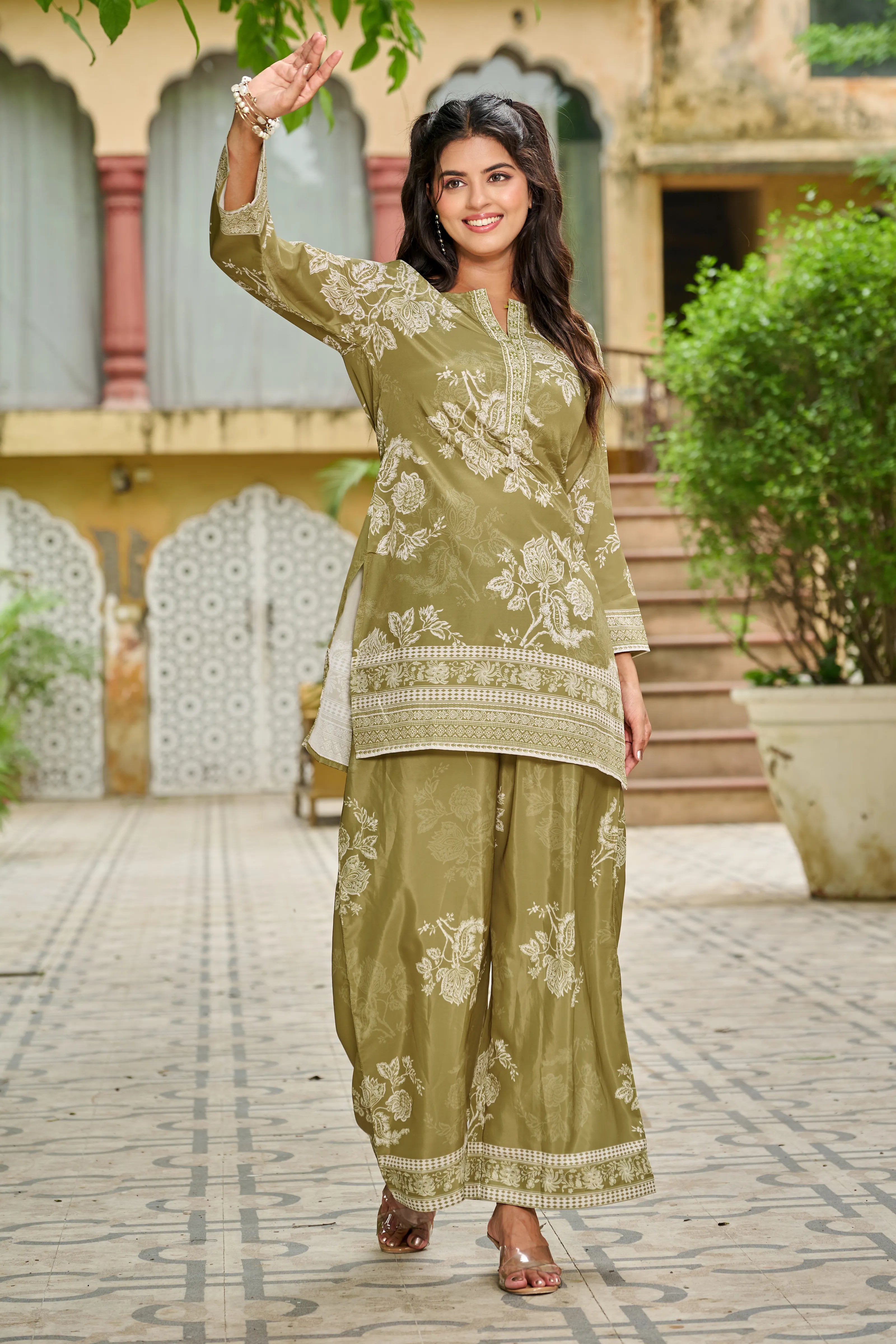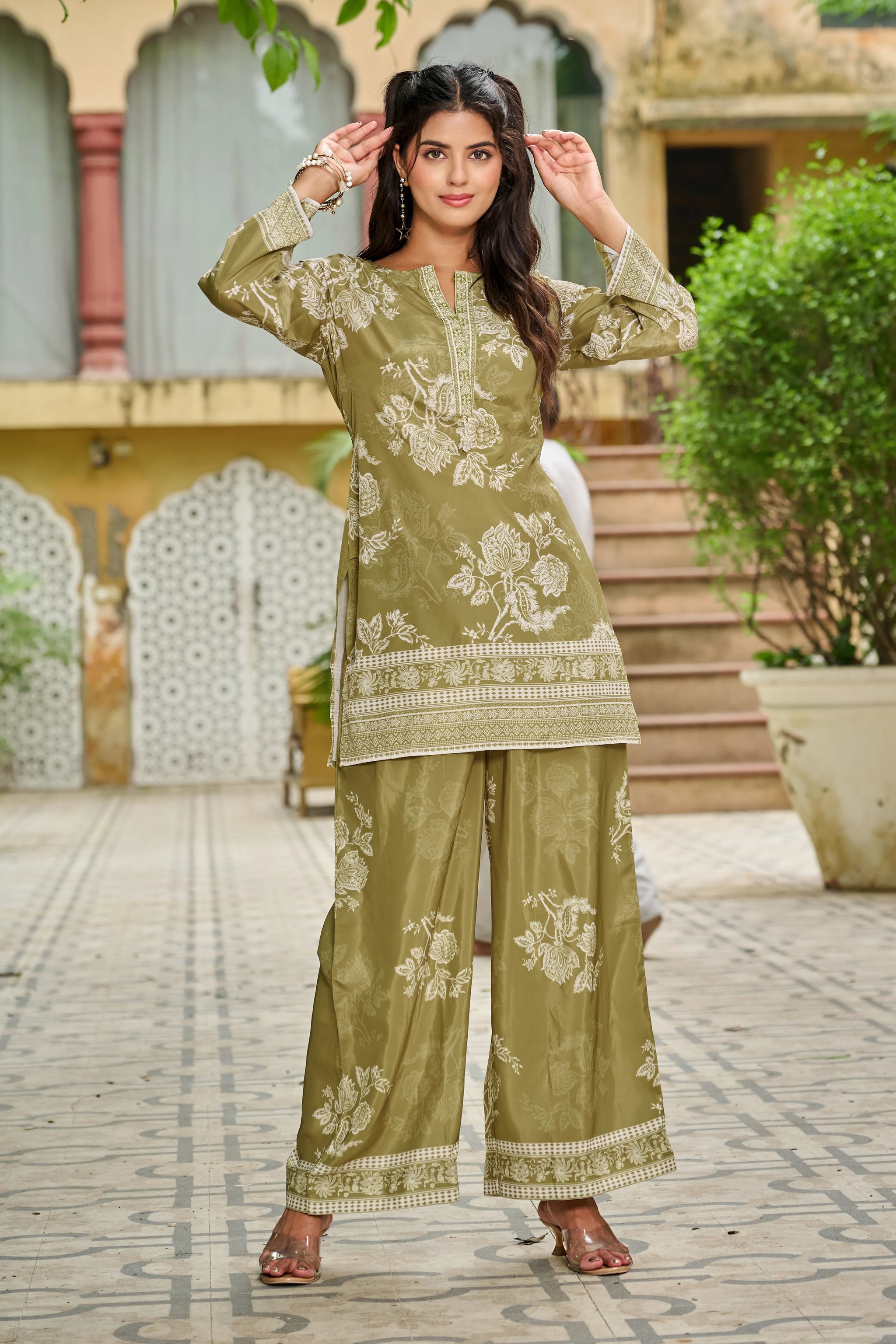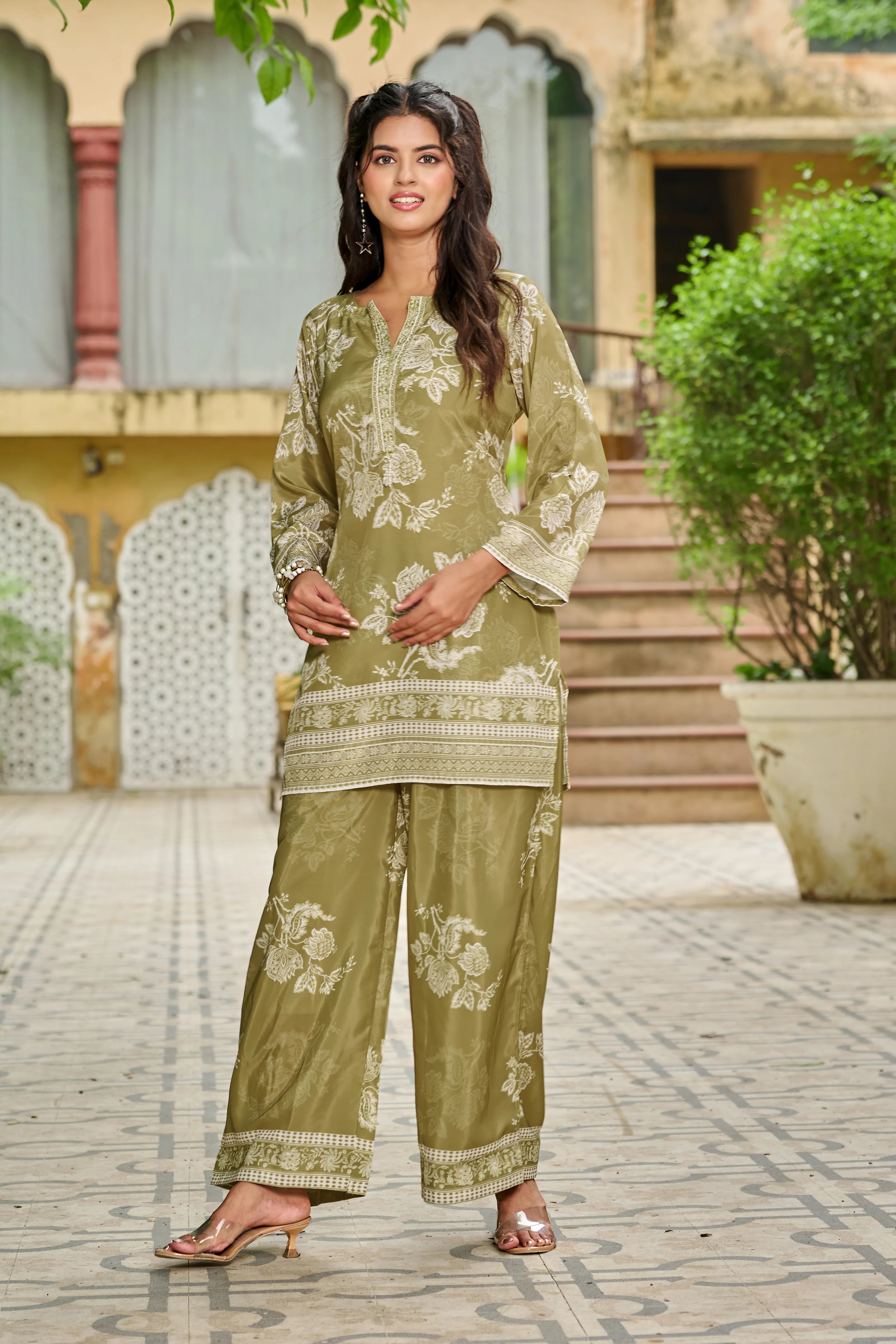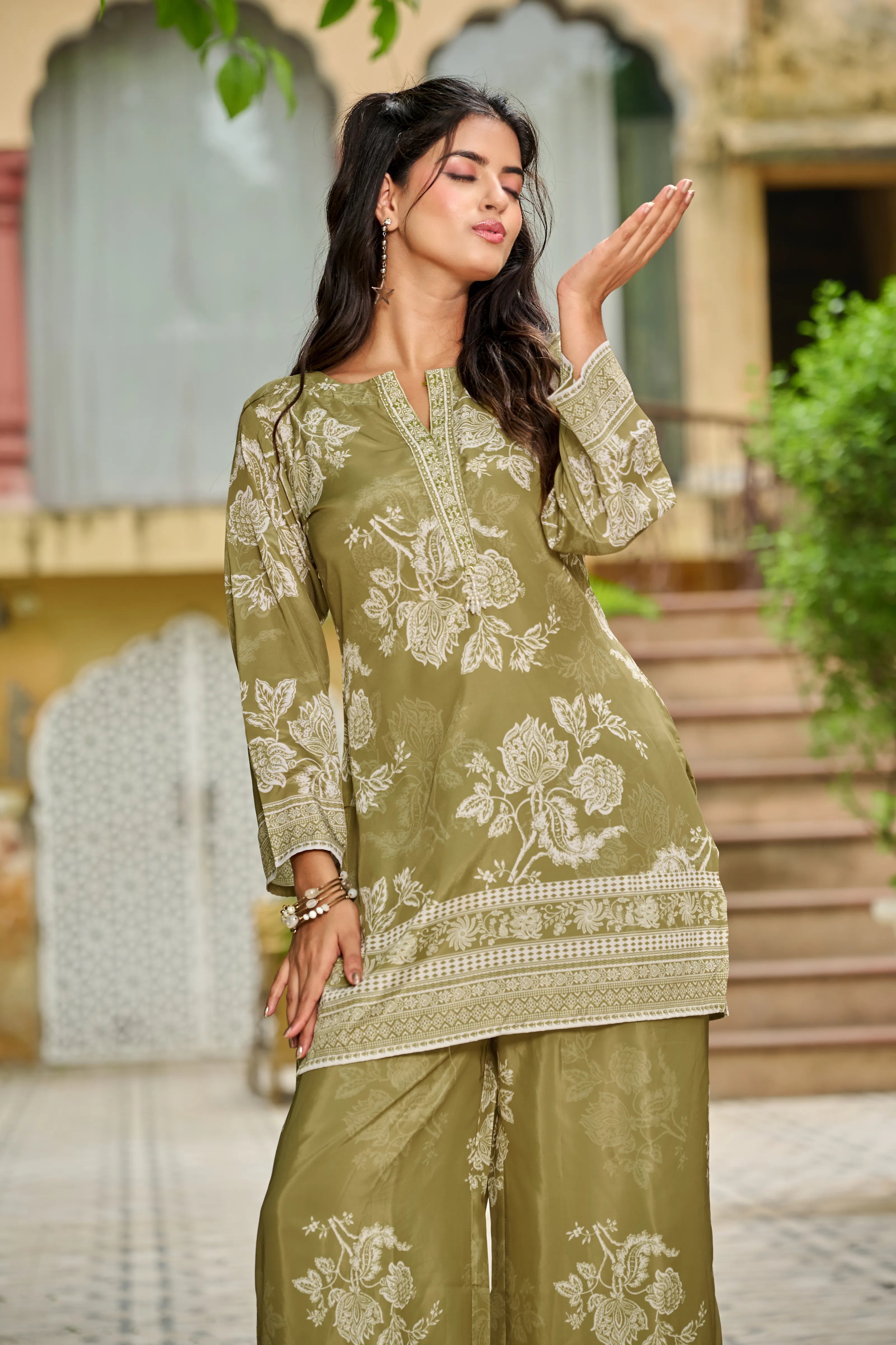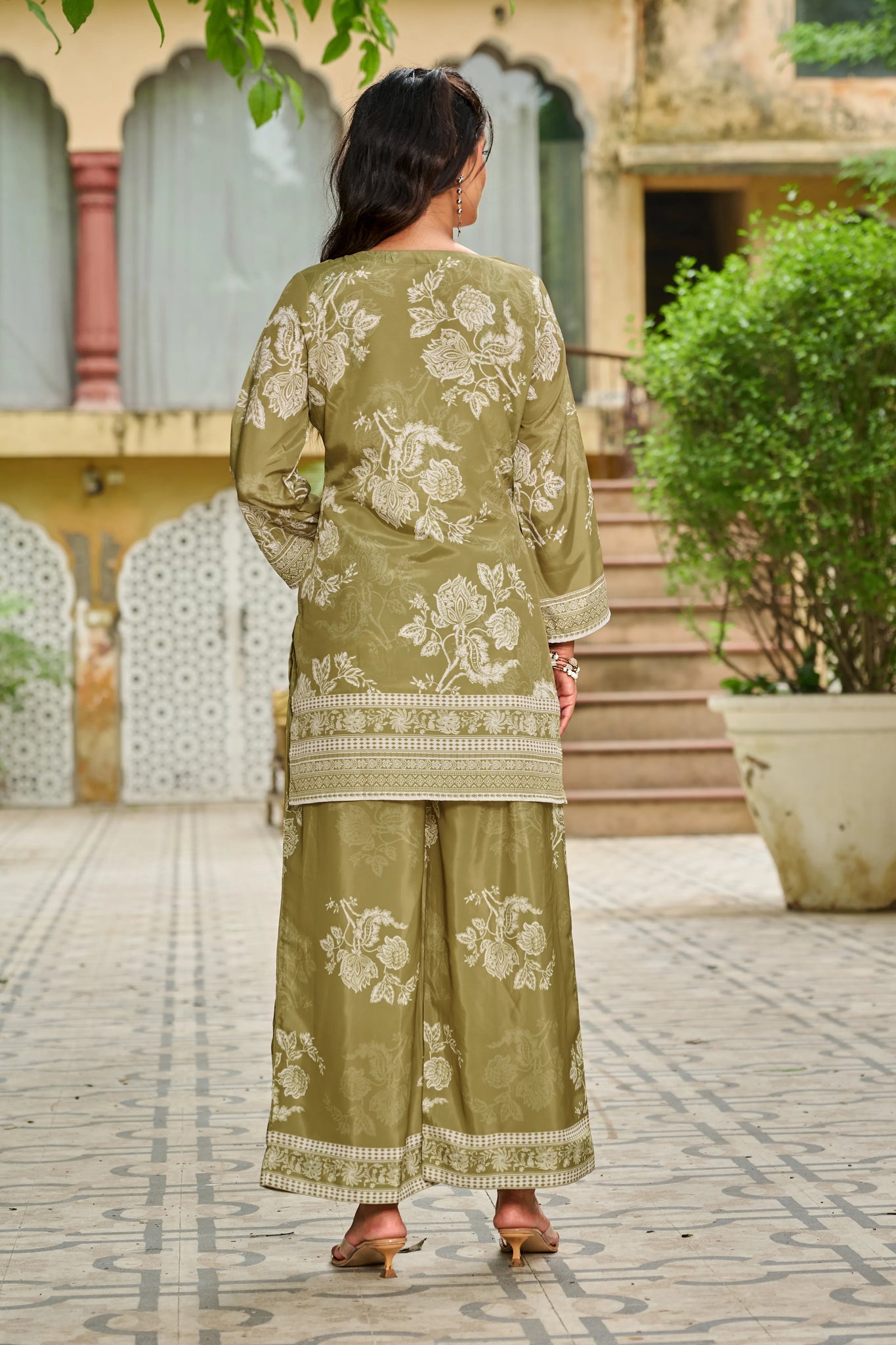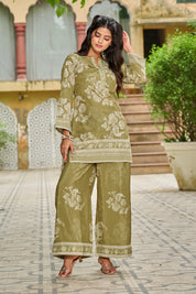 Olive Bloom: Floral Print Crepe Co-ord Set