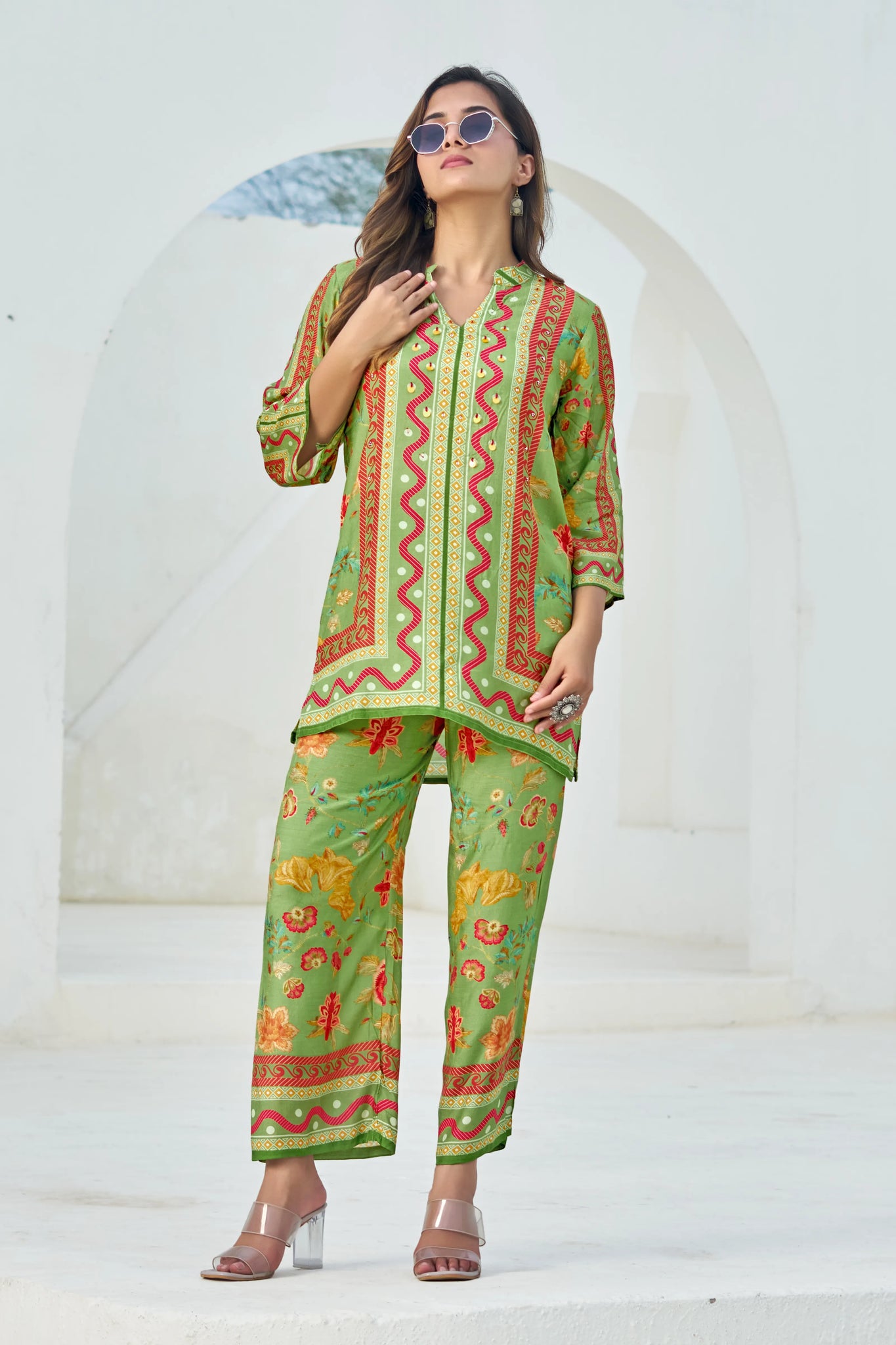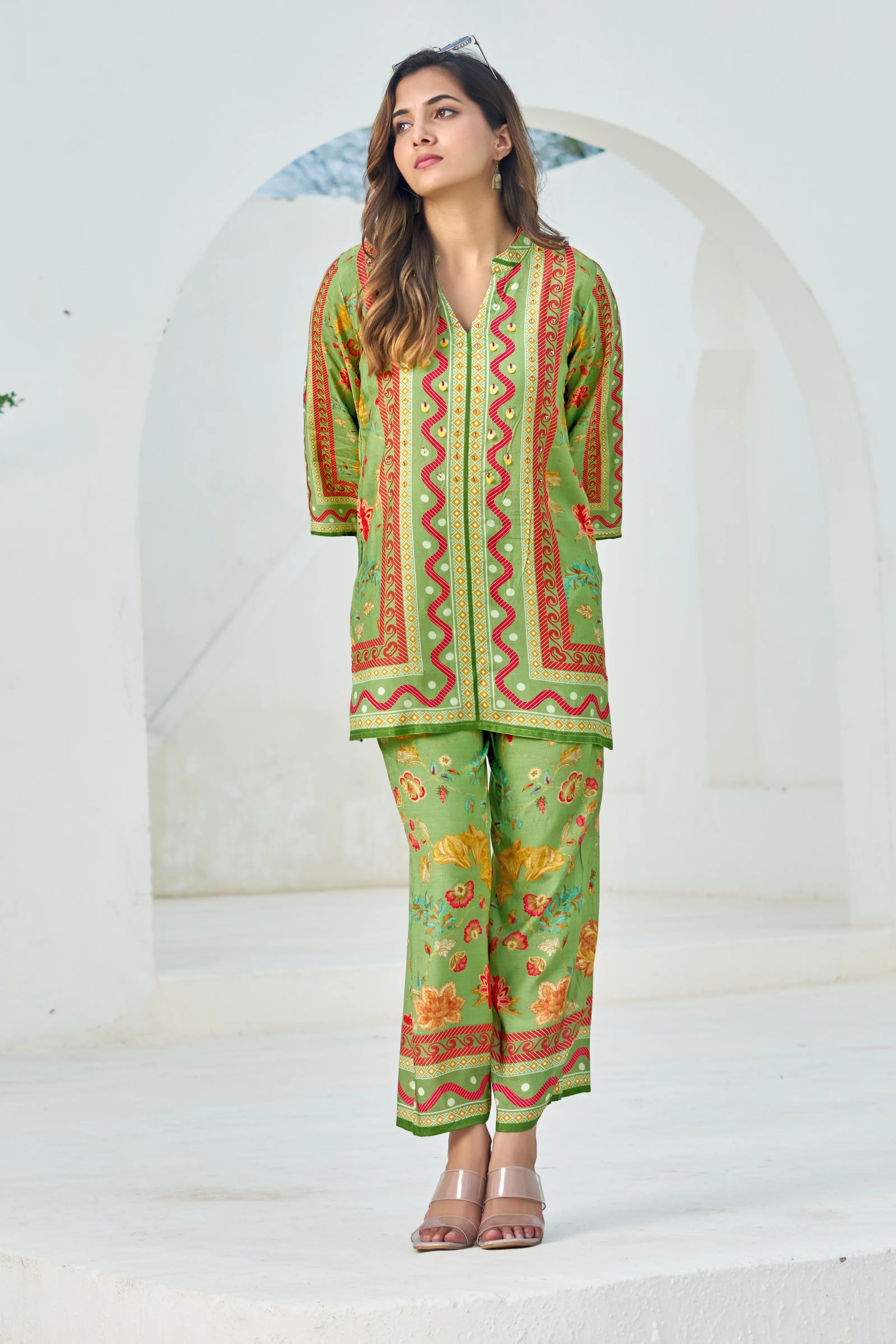 Verdant Gleam: Green Muslin Embellished Co-ord Set