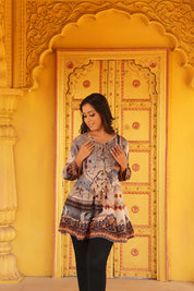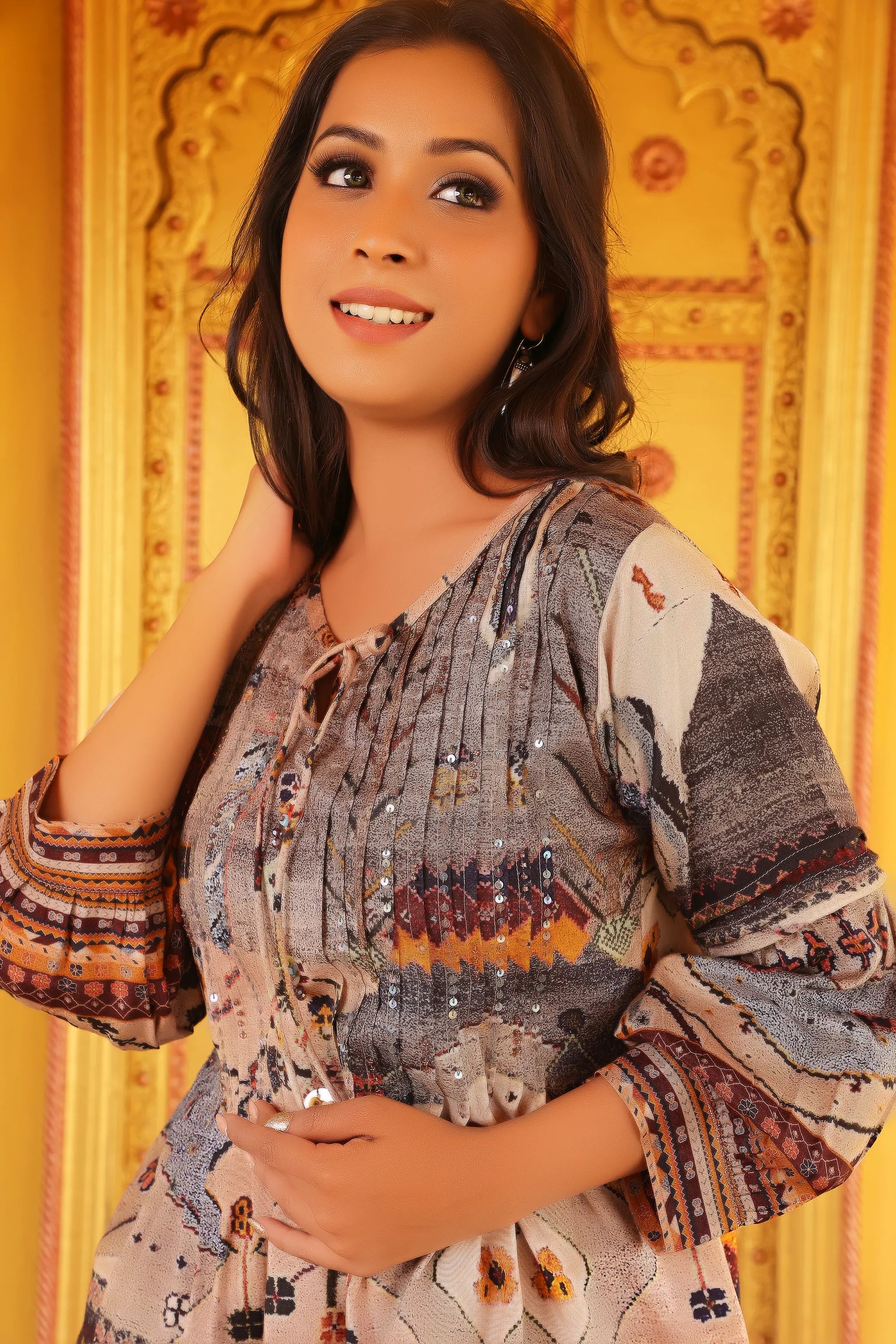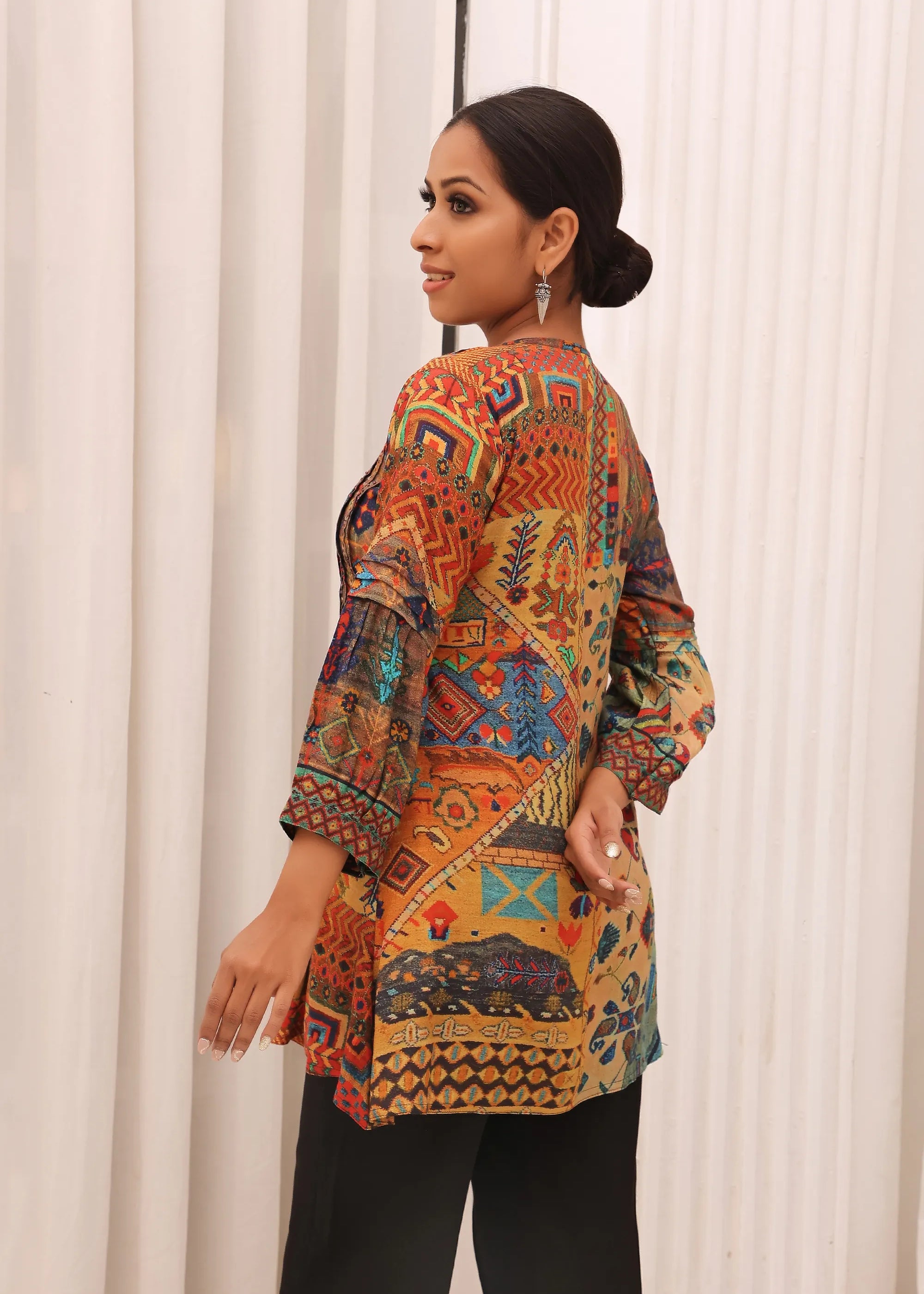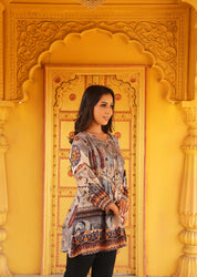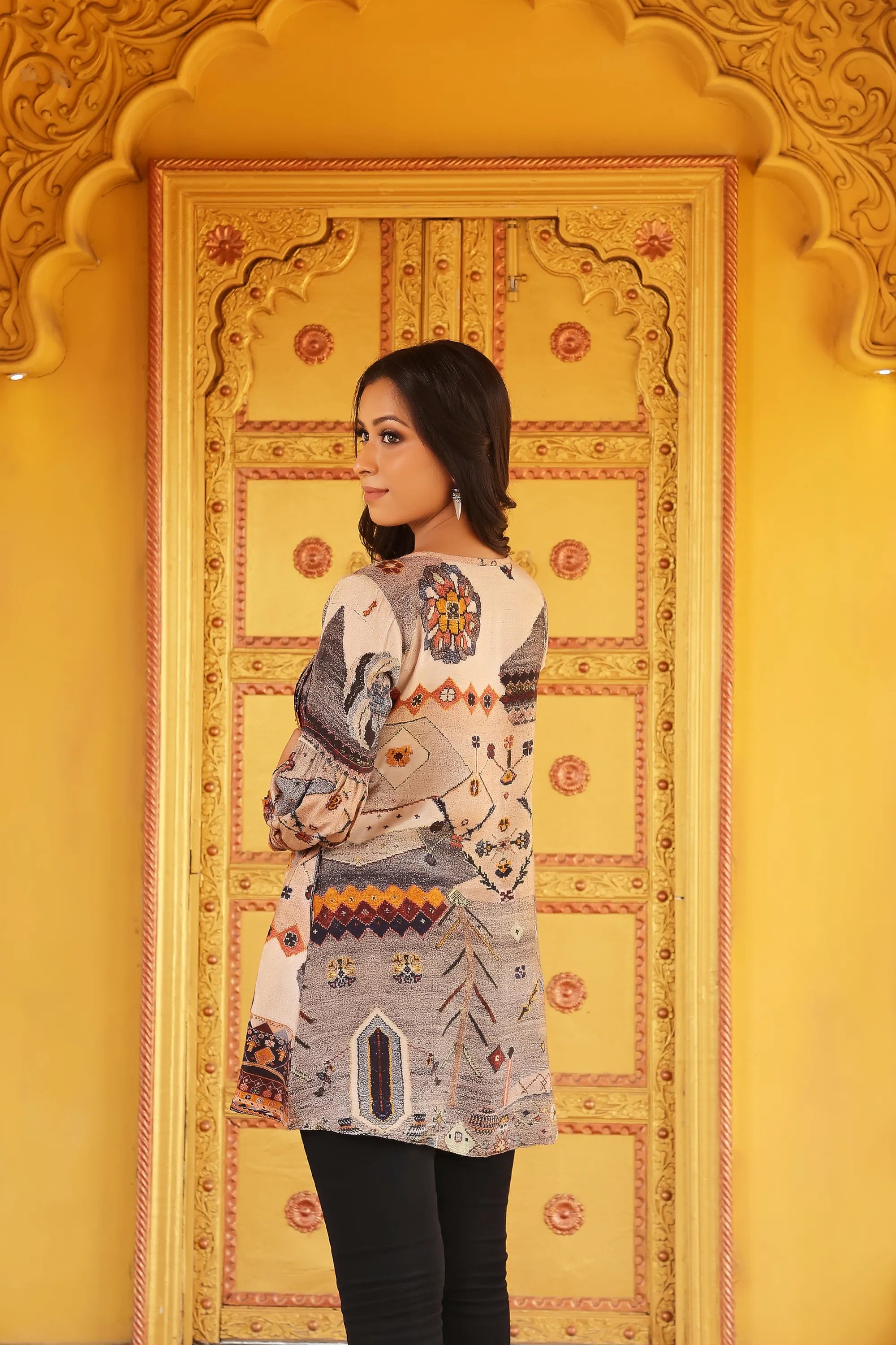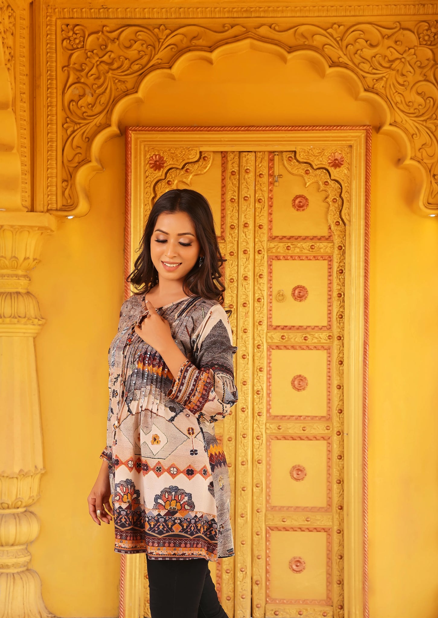 Add some sparkle to your wardrobe with this Beige Multicolored Tunic, featuring stunning sequins embellishments for a touch of glamour. Designed for a casual yet chic look, this tunic is perfect for any laid-back occasion.