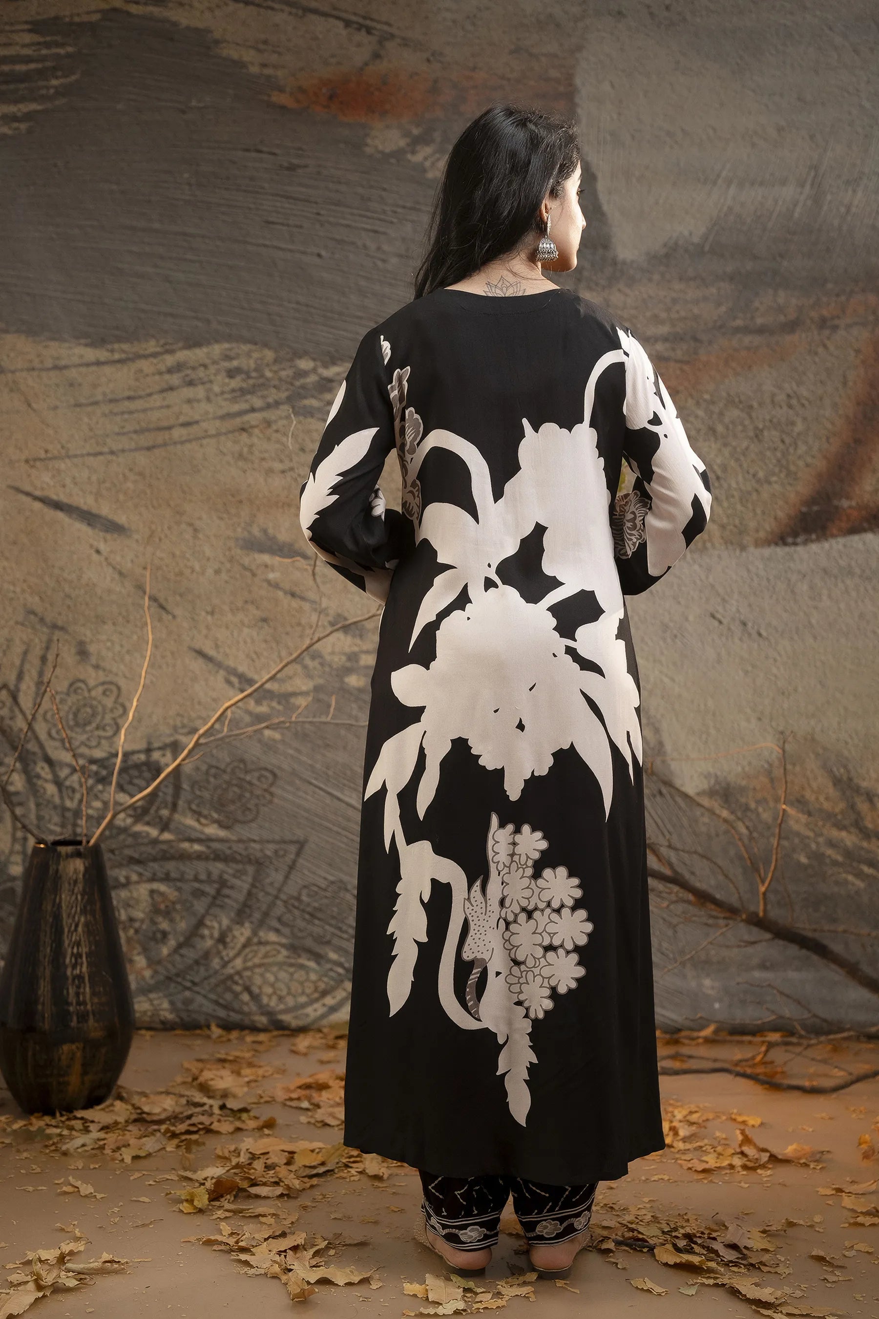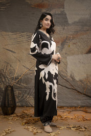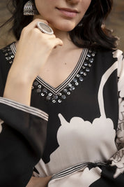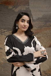Black Bold Floral Printed Rayon kurta set