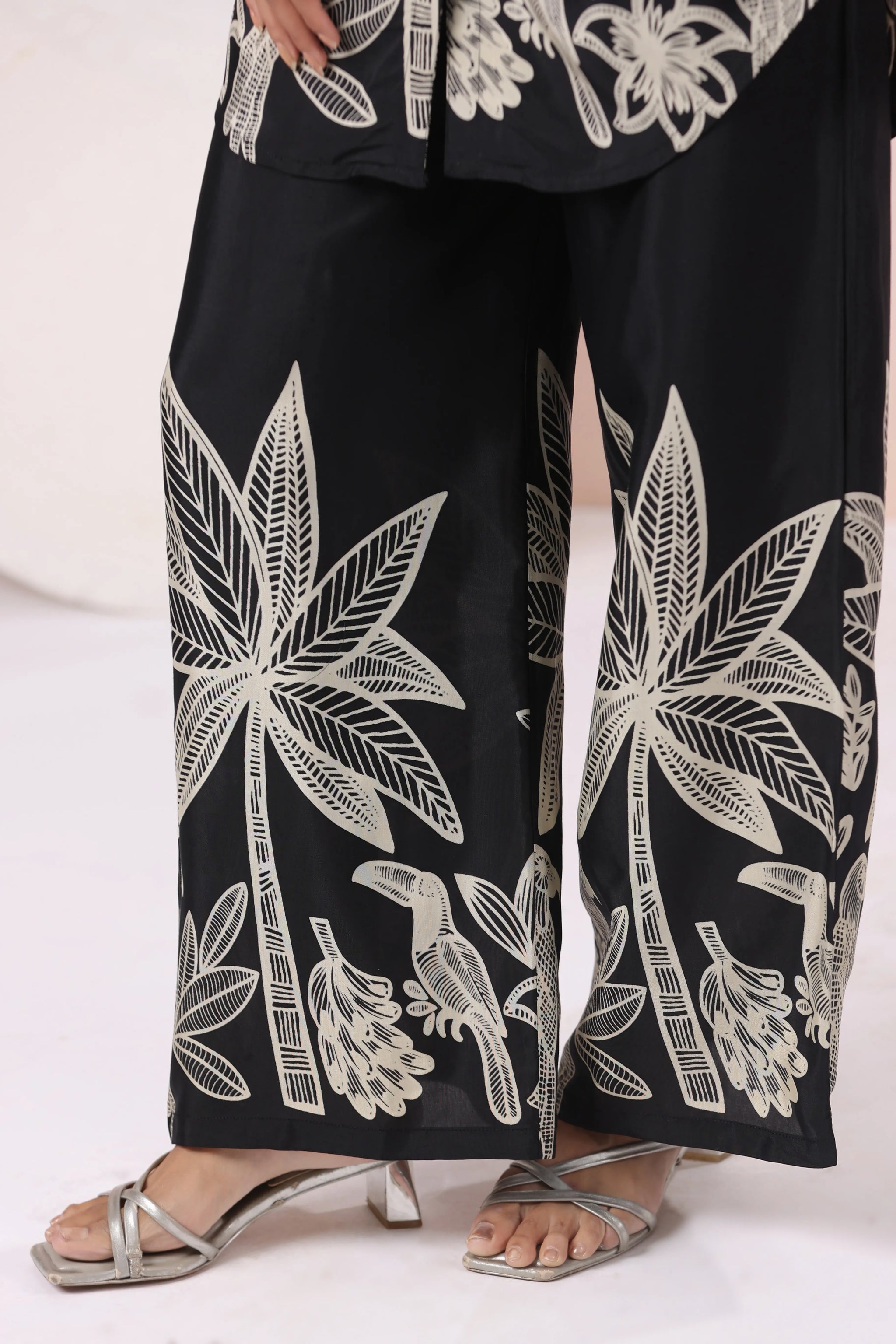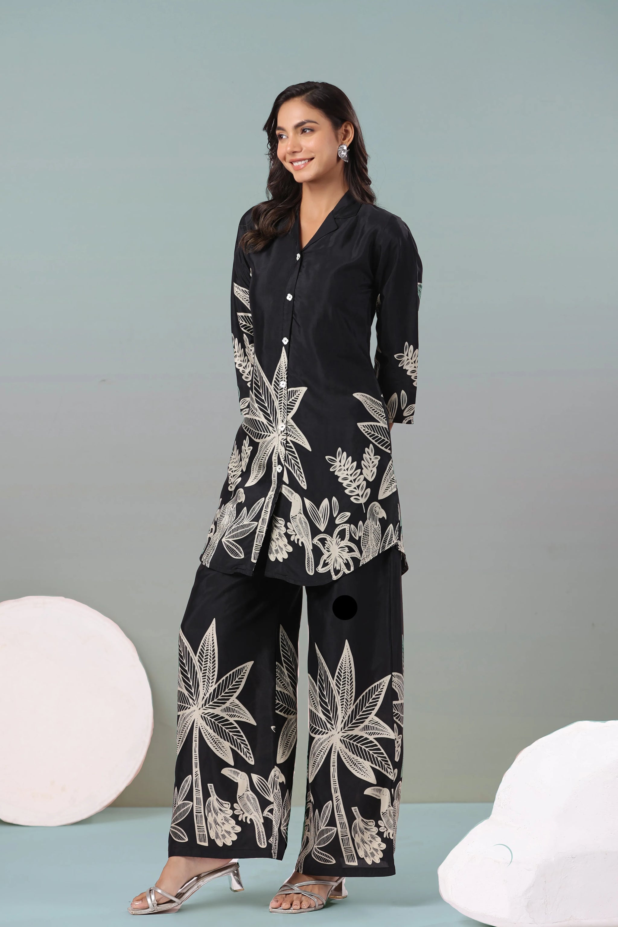 Black Bold Palm Russian Silk Print Co-Ord Set
