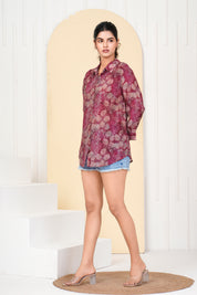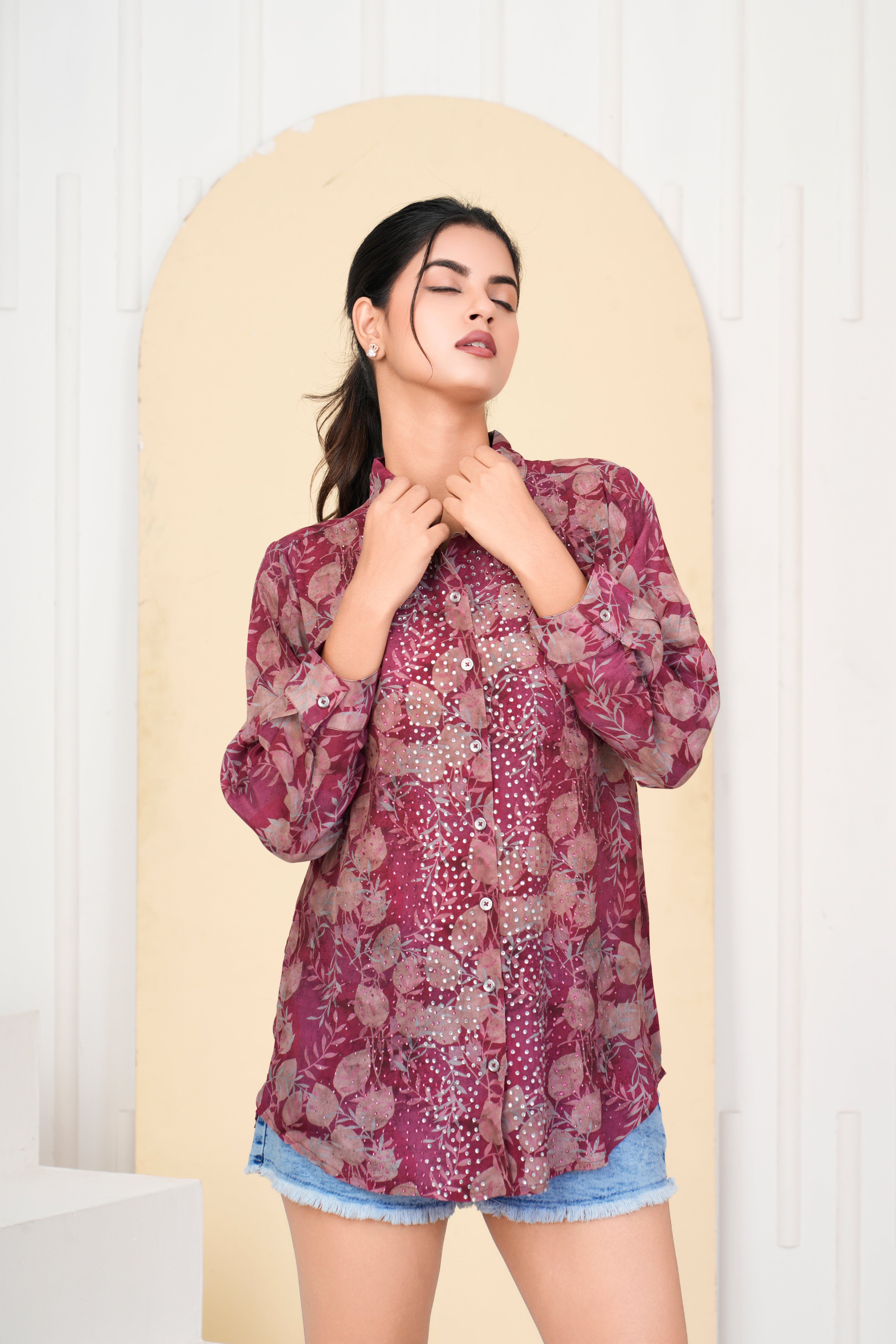 Add a pop of color and sparkle to your wardrobe with this Fuchsia Pink Printed Shirt, where effortless elegance meets contemporary charm!