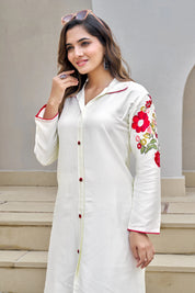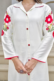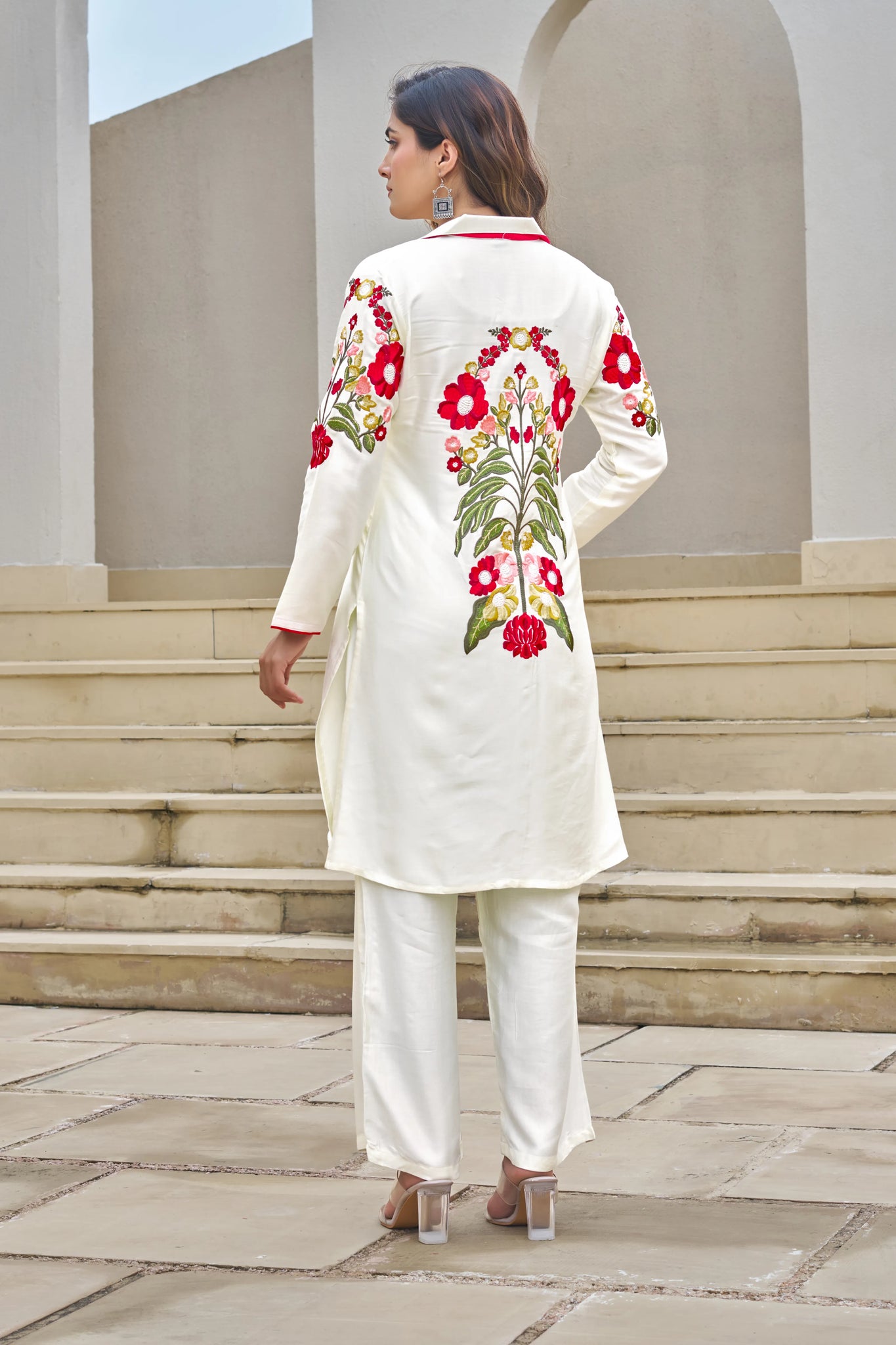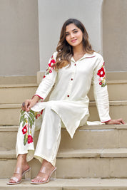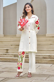 Ivory Embroidered Floral Viscose Silk Co-ord Set