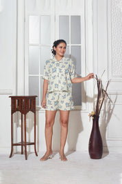 Add a touch of softness and style to your wardrobe with this beautifully coordinated floral short set, where comfort and design come together effortlessly.