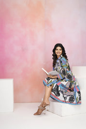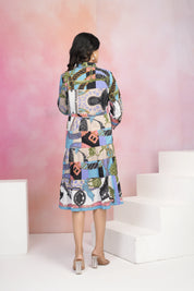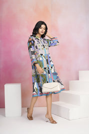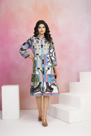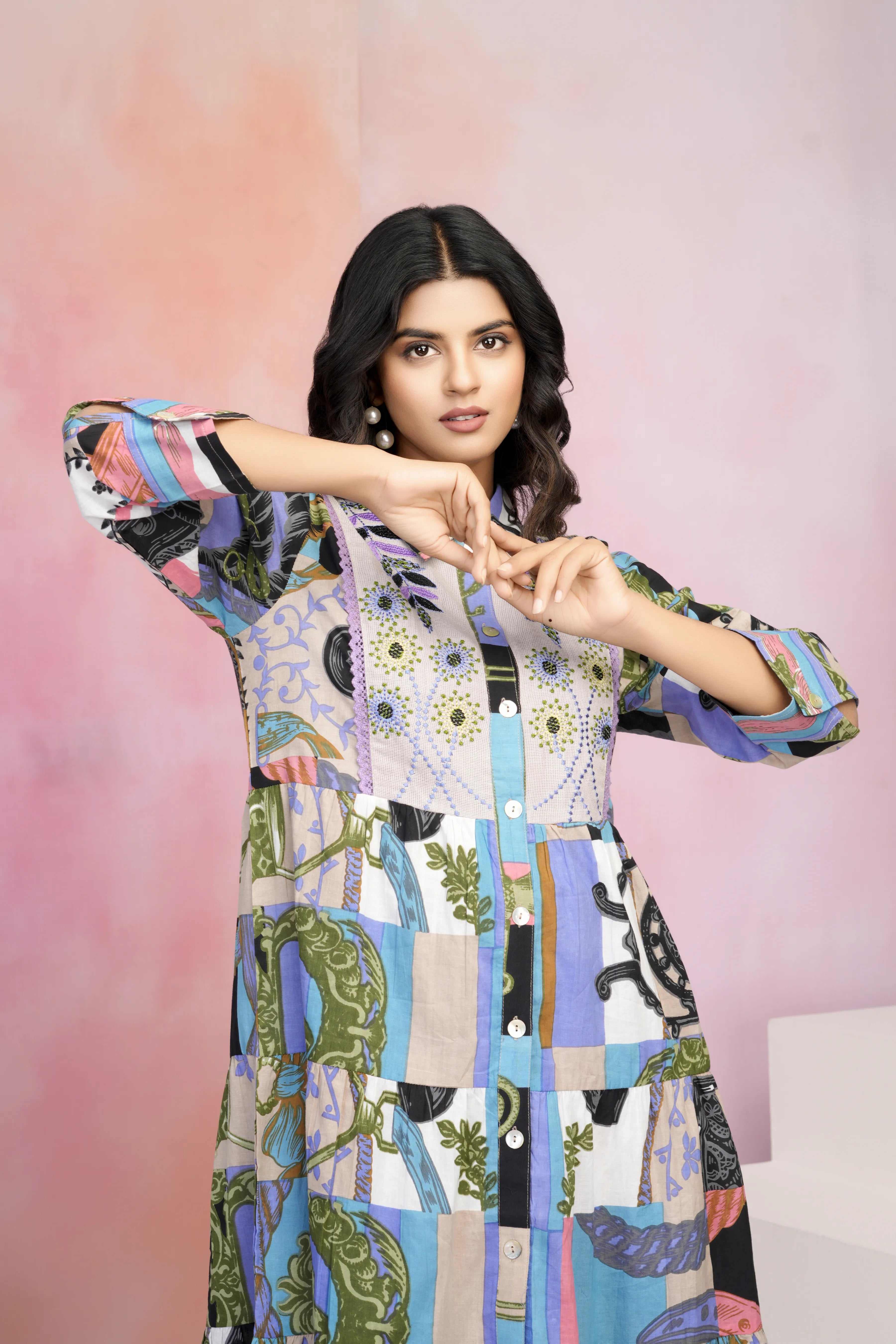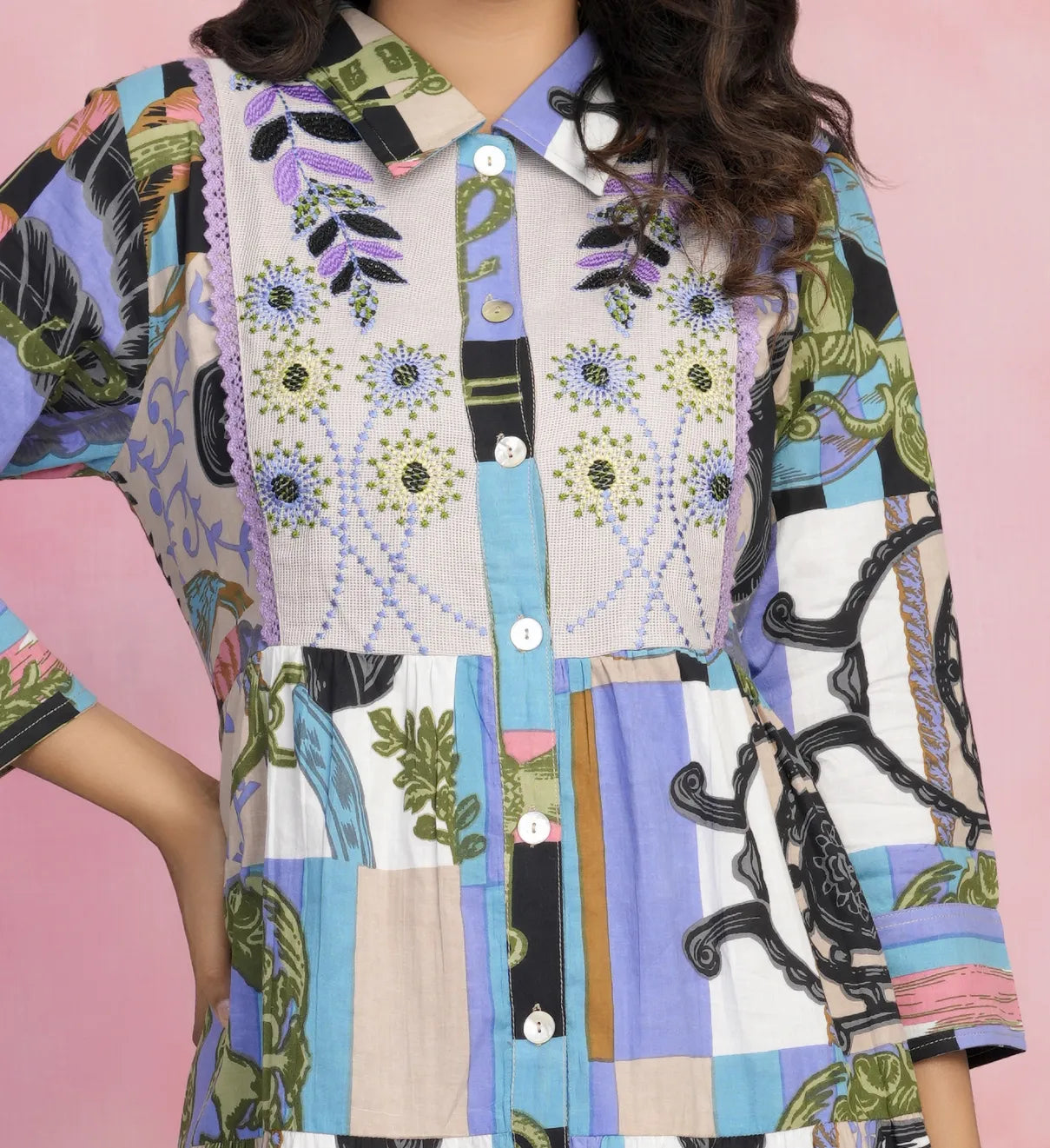 This Multicolor Embroidered Printed Lace Detailed Cotton Midi Dress is a perfect combination of vibrant colors, intricate detailing, and comfort. Featuring a beautiful multi-color floral print with exquisite embroidery and lace accents, this dress is designed to make a statement. Crafted from soft cotton cambric, it provides both comfort and style. The charming fake shell buttons add a playful, unique touch, making it ideal for any occasion.