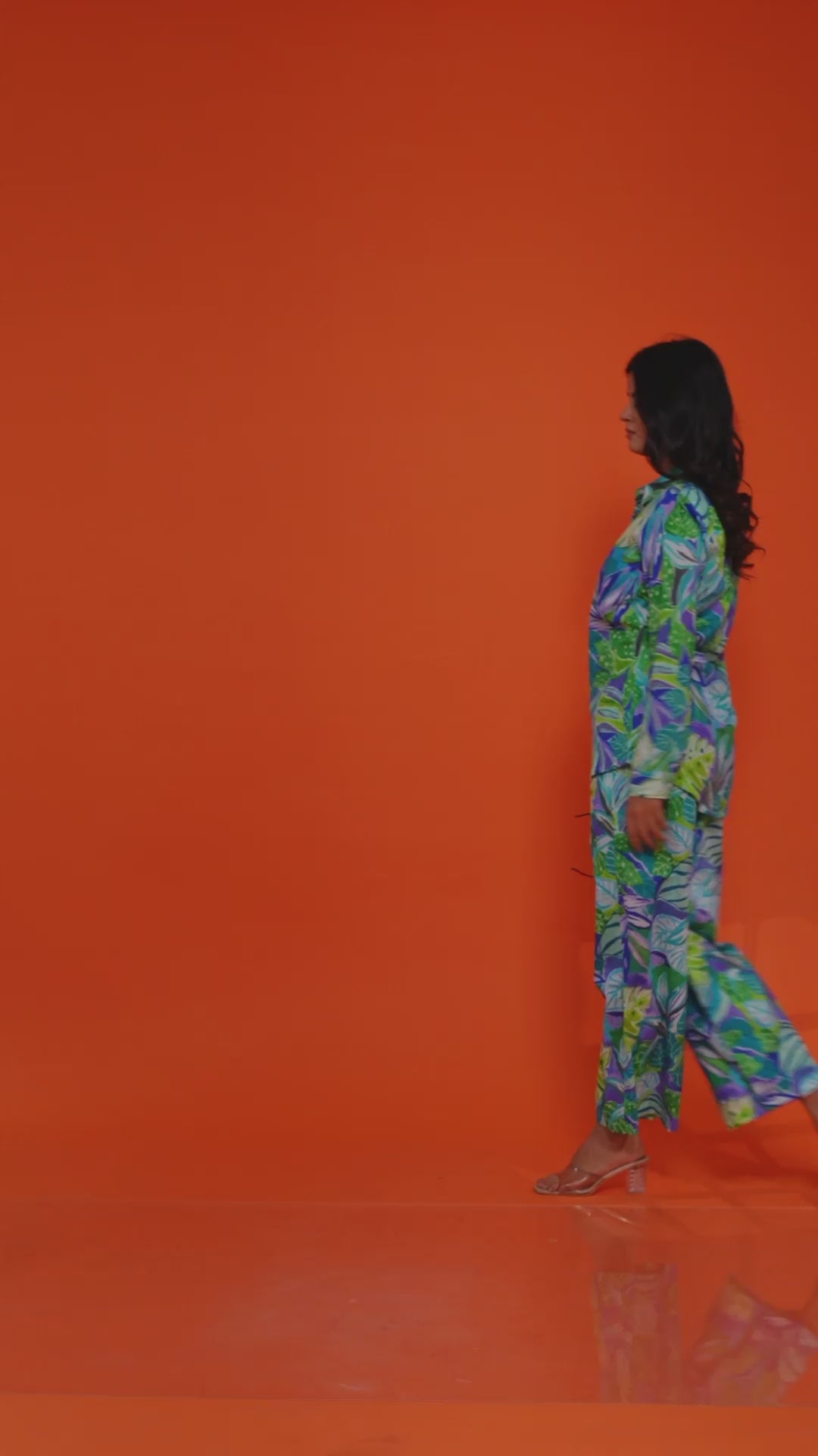 A celebration of nature’s vibrance and expressive style, this multicolor co-ord set brings a refreshing jolt of energy to your wardrobe. Crafted in soft, breathable cotton cambric, the silhouette is light on the skin and bold in personality—designed for sun-drenched days, tropical getaways, and everyday statements.
