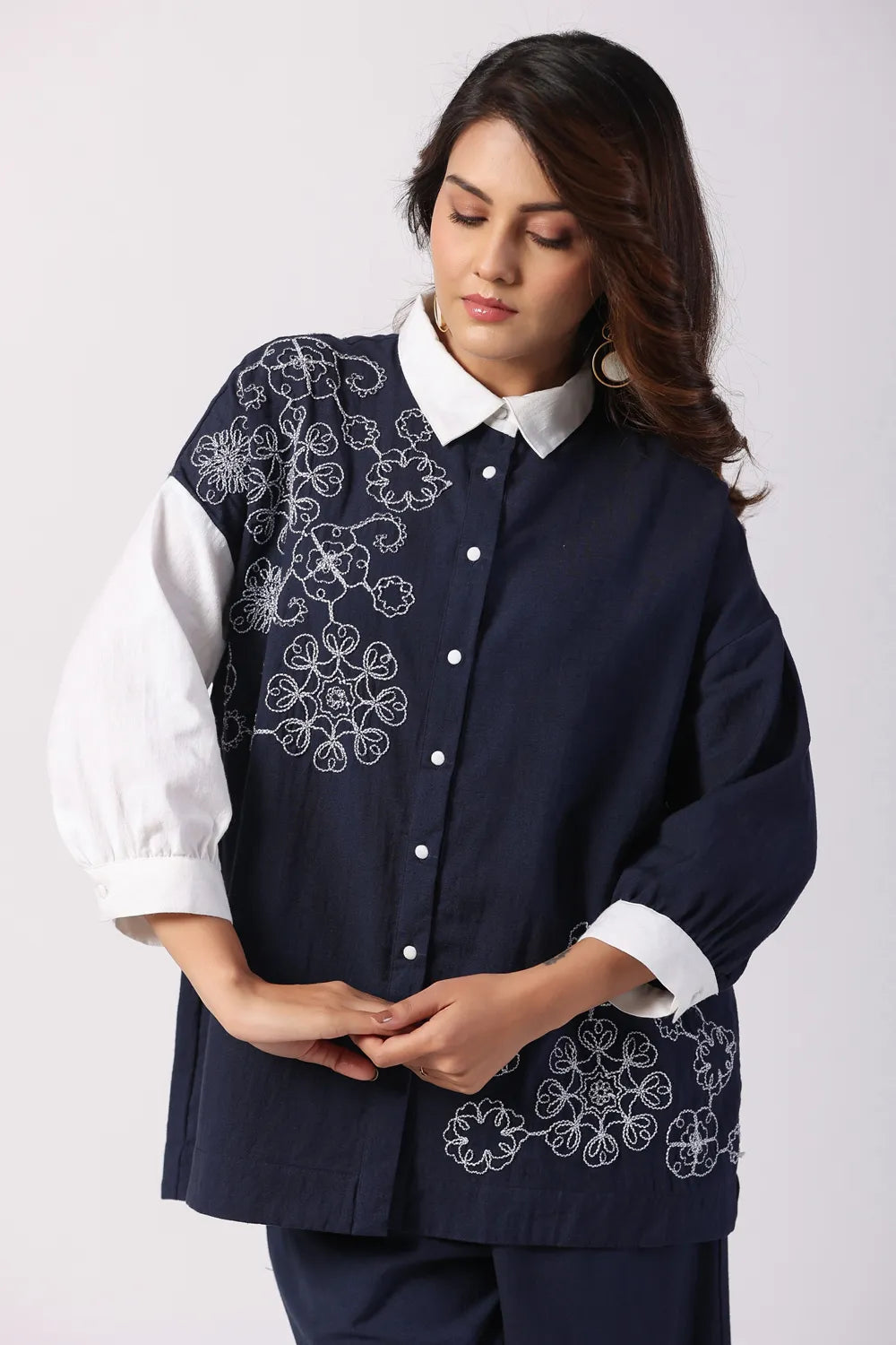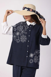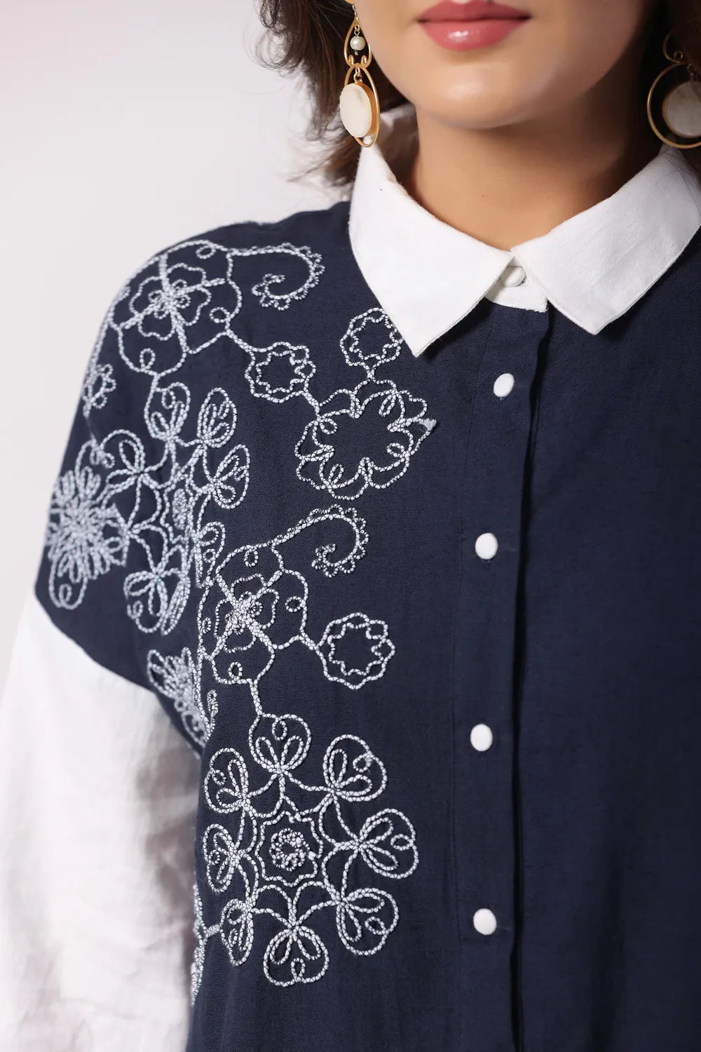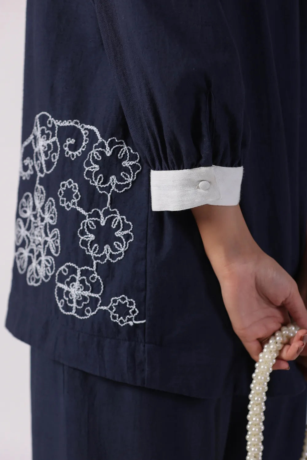 Navy Blue & White Embroidered Cotton Co-Ord set