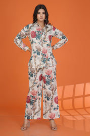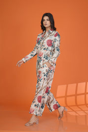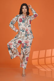 Off-White Bold Floral Printed Co-Ord Set in Cotton Cambric