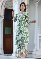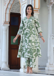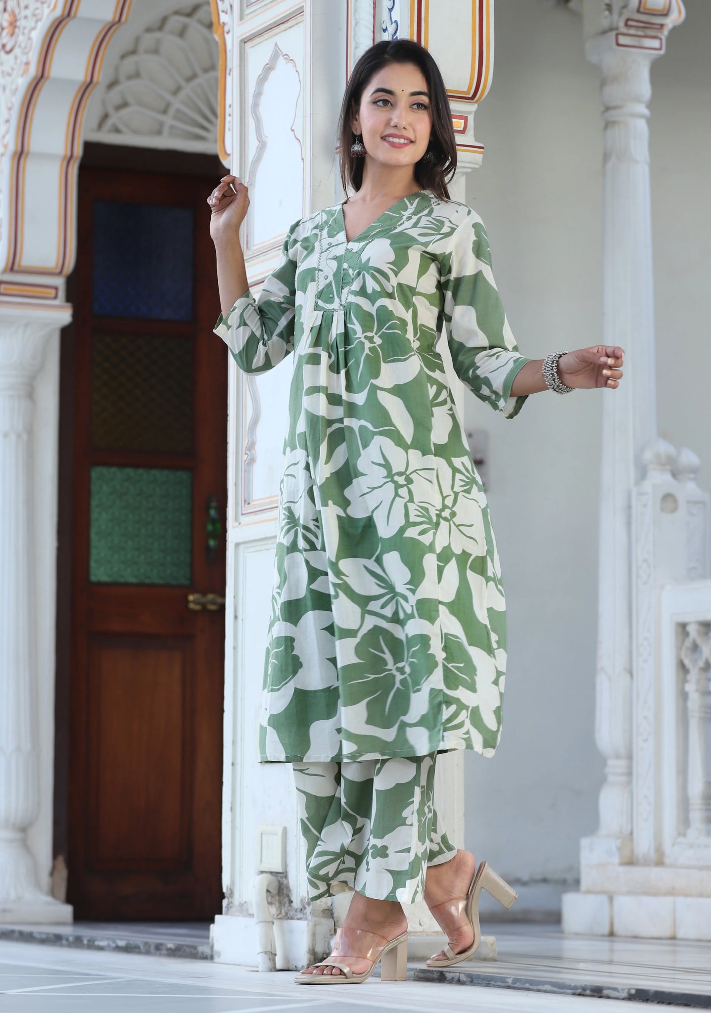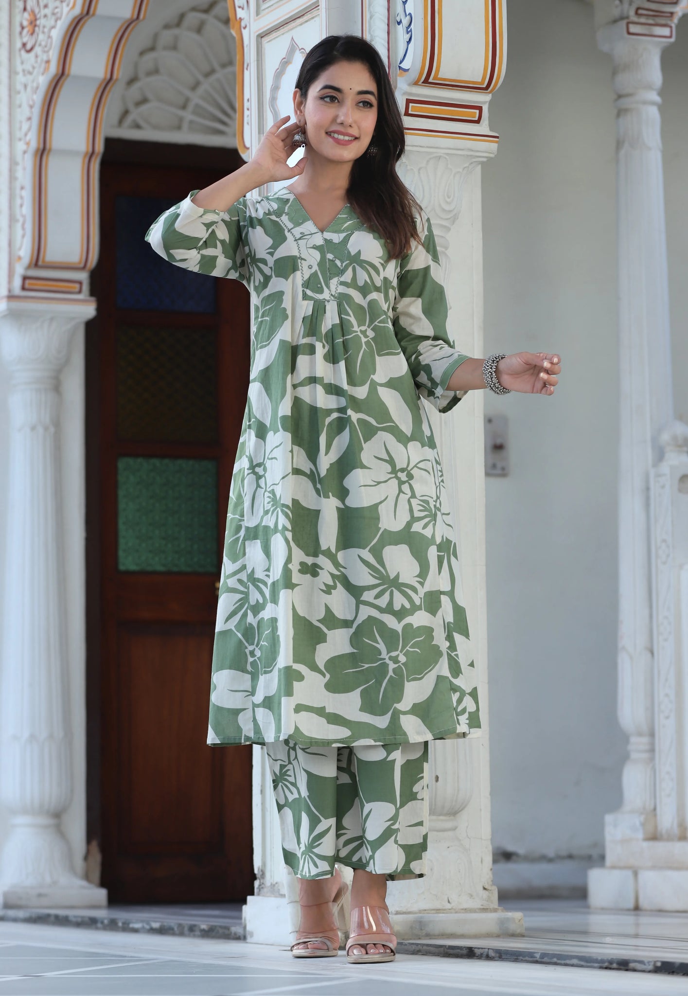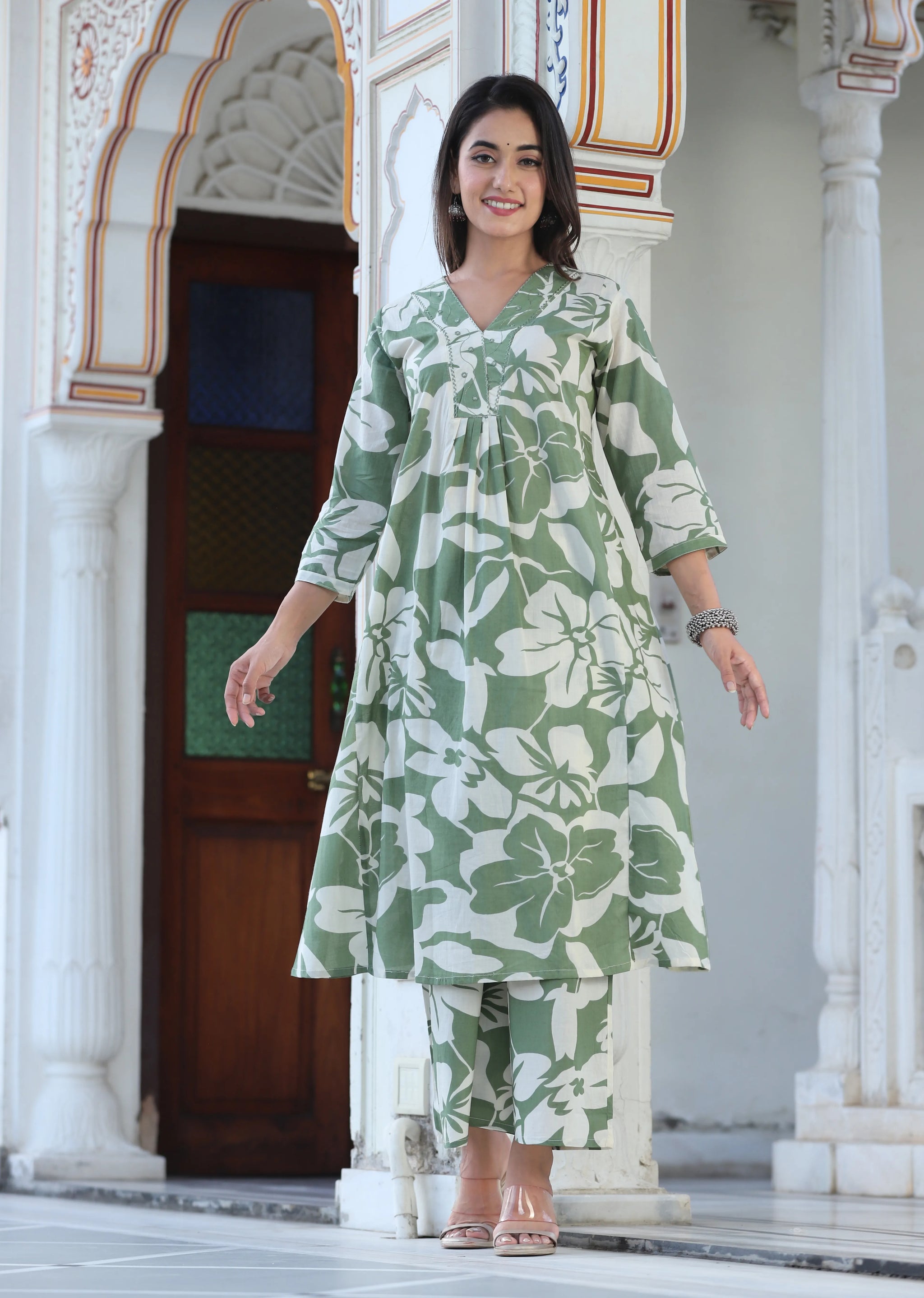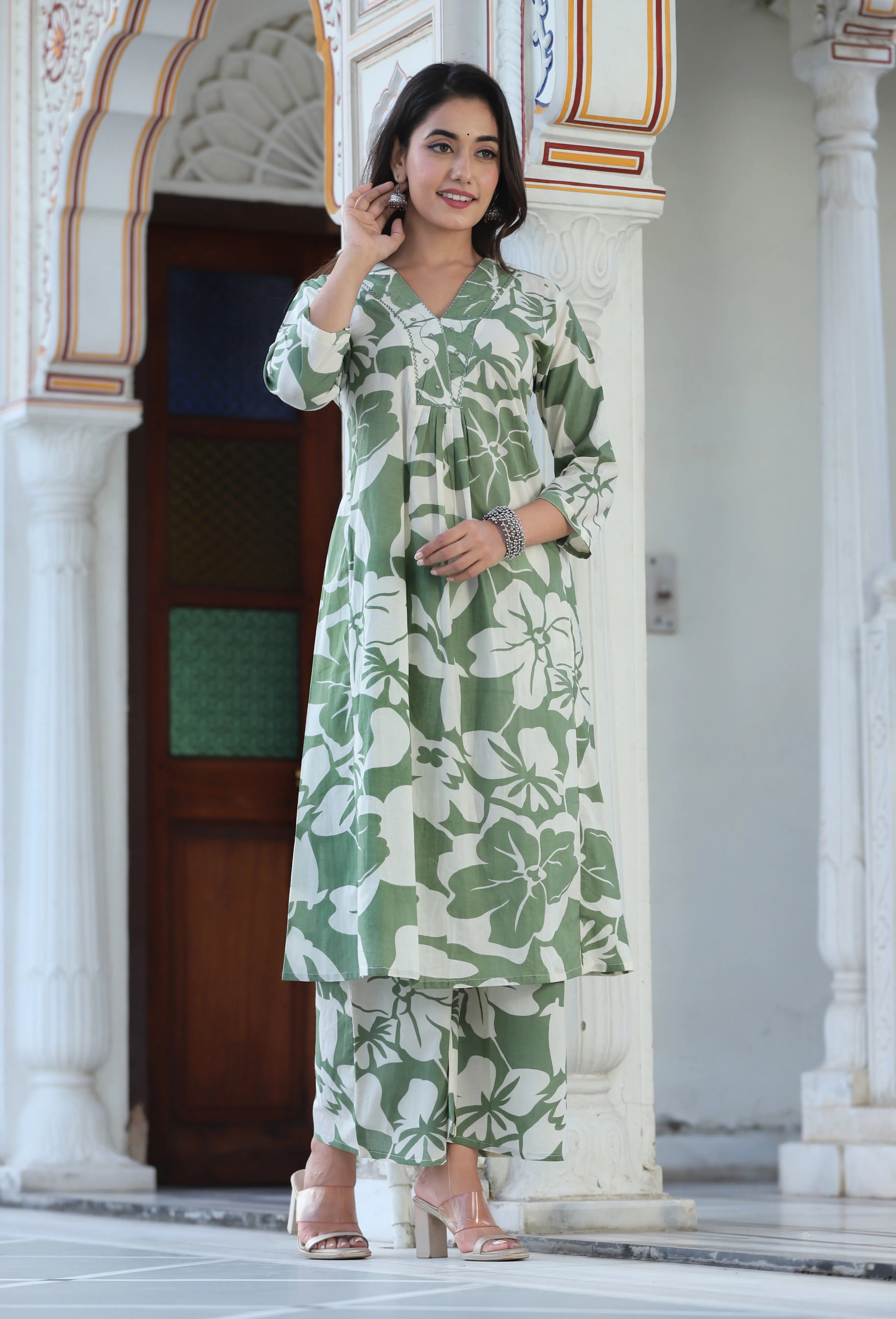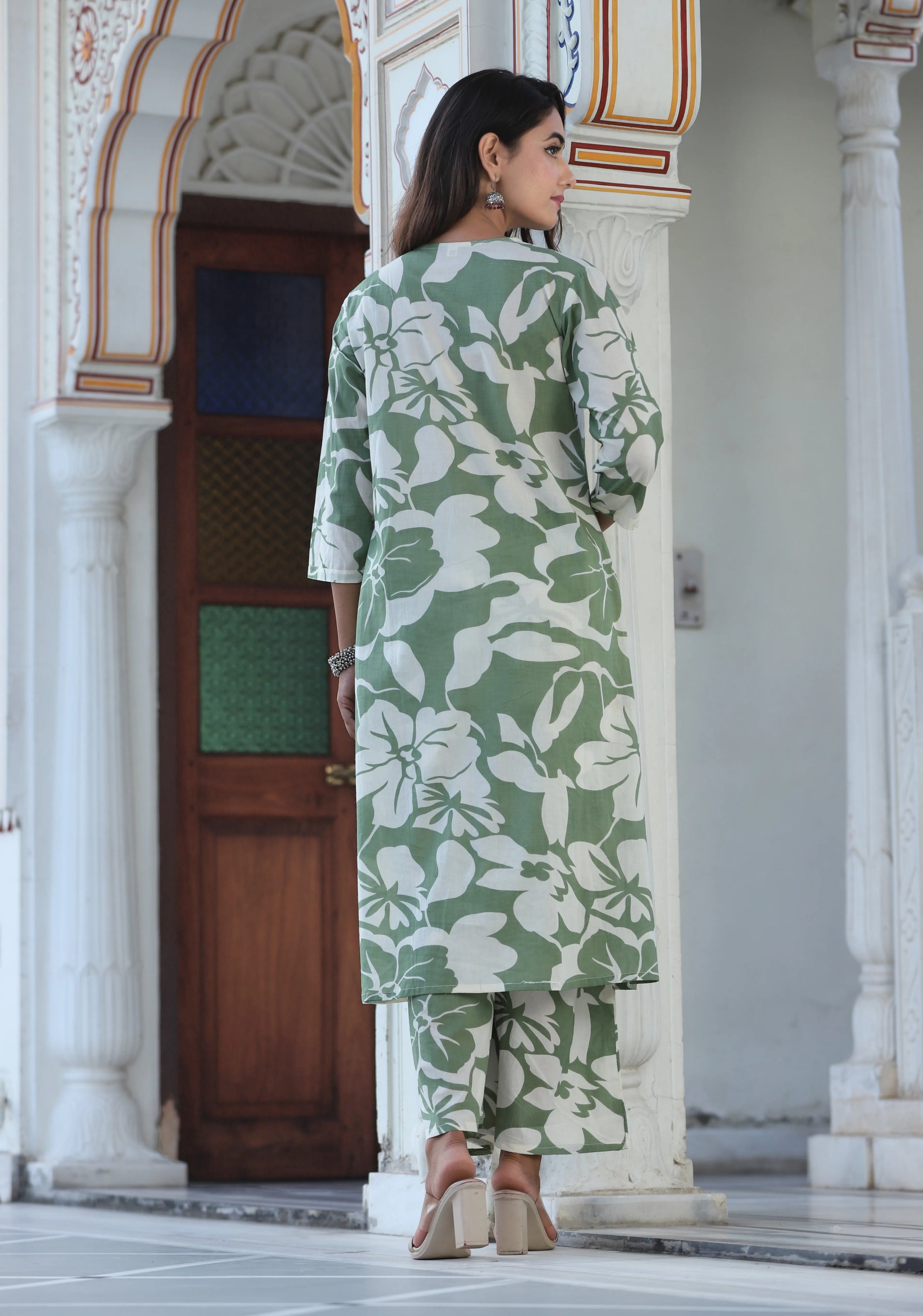 Effortless Elegance with the Sage Green Floral Printed Cotton Co-ord Set