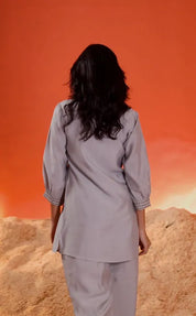 This grey co-ord set combines understated elegance with modern style, making it an essential addition to your wardrobe.