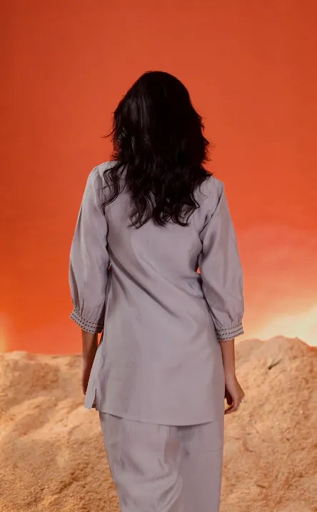 Solid Grey embroidered 3/4th sleeve Viscose co-Ord set