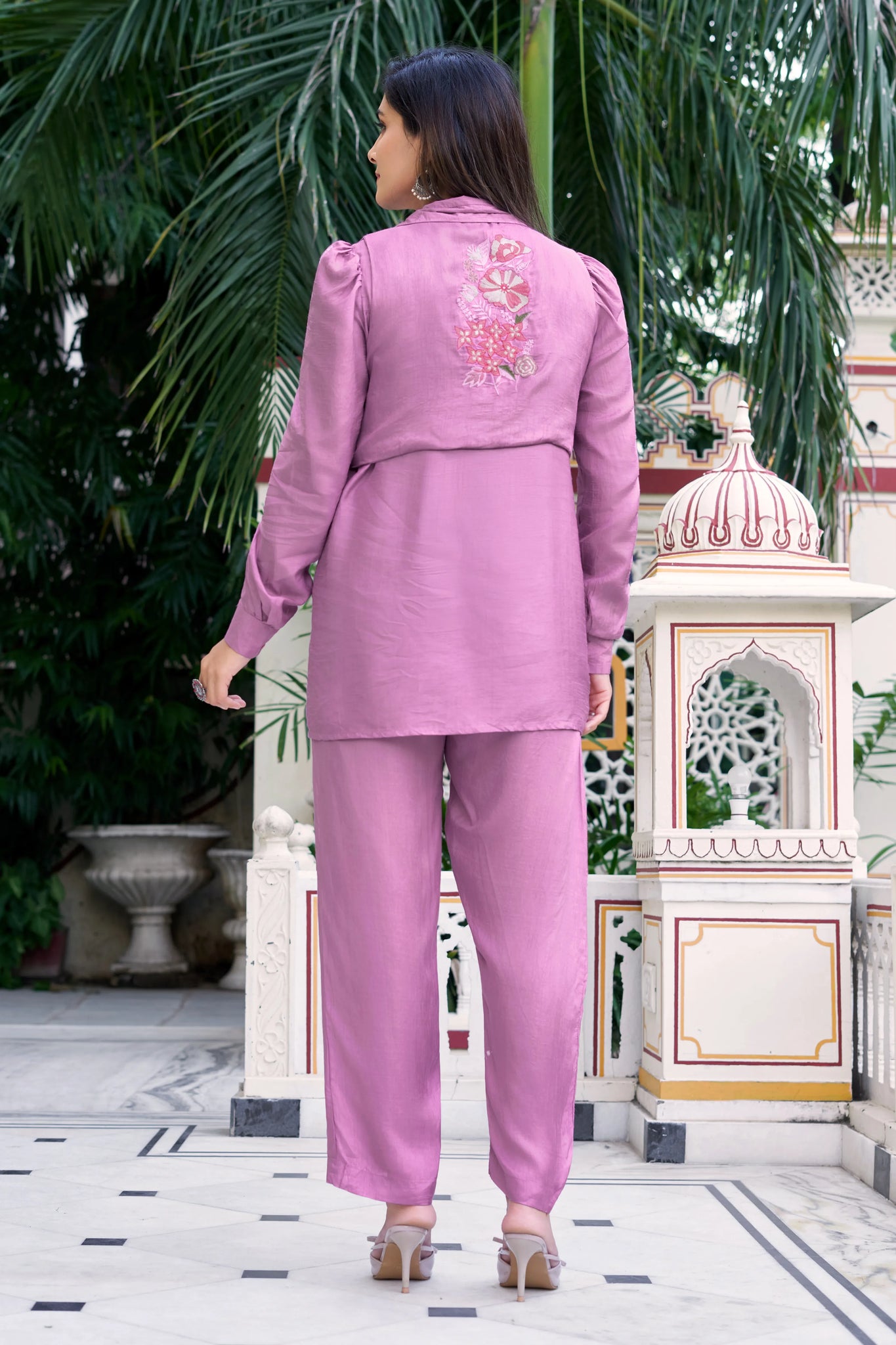 Royal Violet: Embroidered 3-Piece Set in Dola Silk