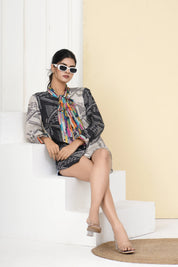 Upgrade your wardrobe with this Black & Cream Abstract Printed Shirt, a perfect blend of modern artistry and refined details. Crafted from soft and flowy viscose, this top features a striking allover abstract print, exuding effortless sophistication.