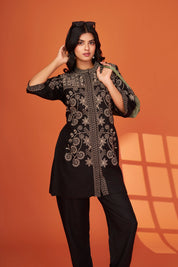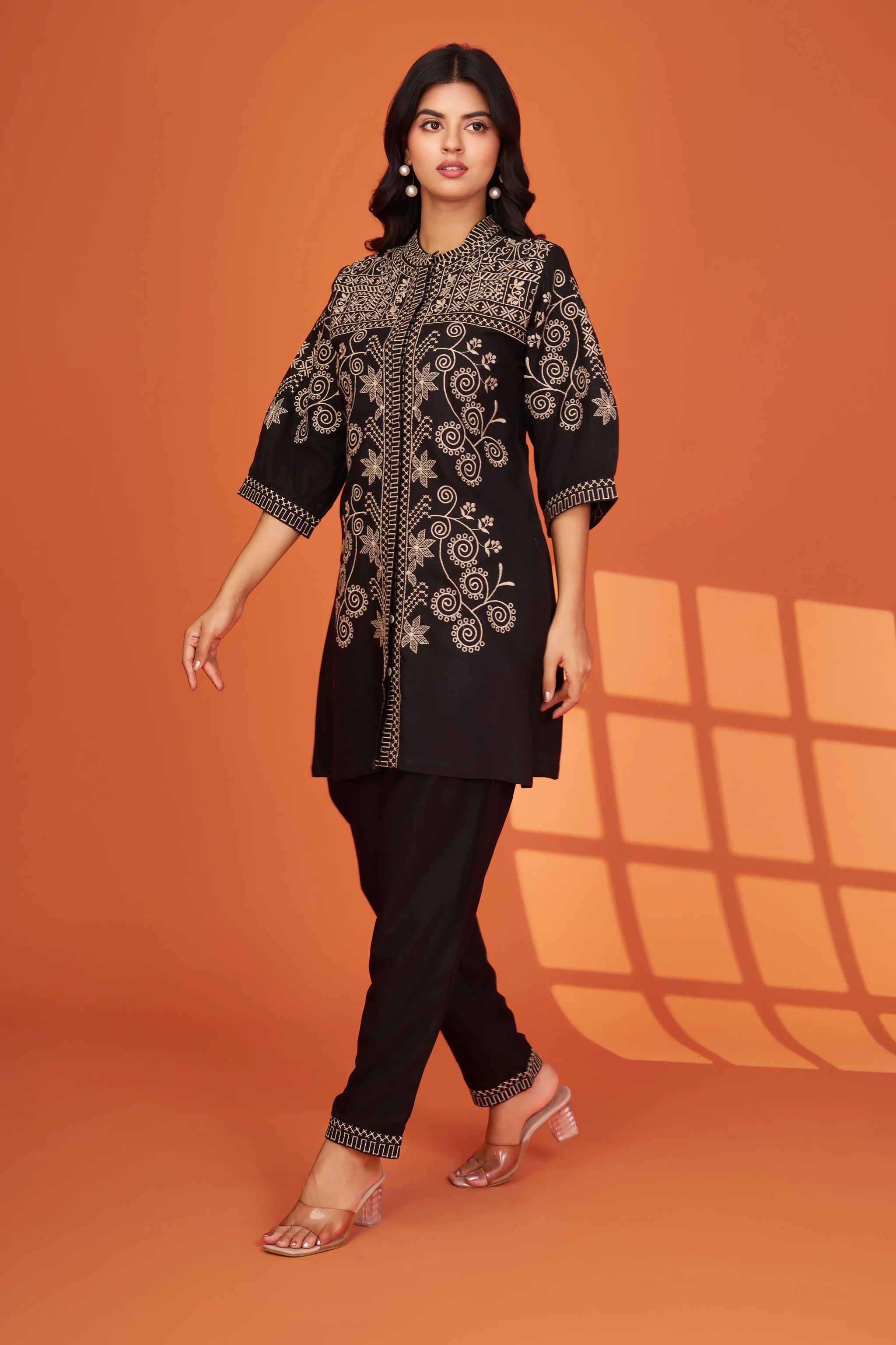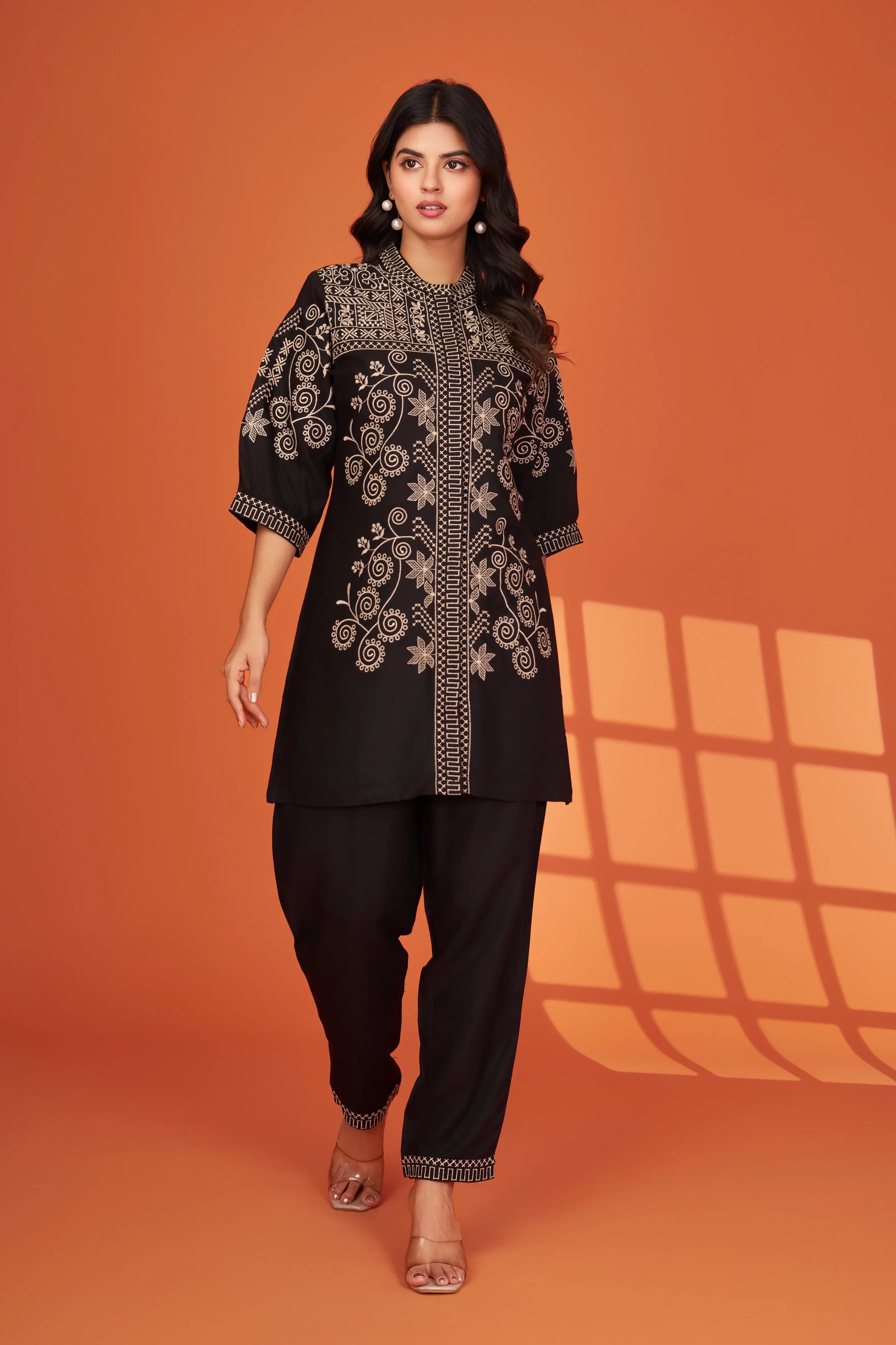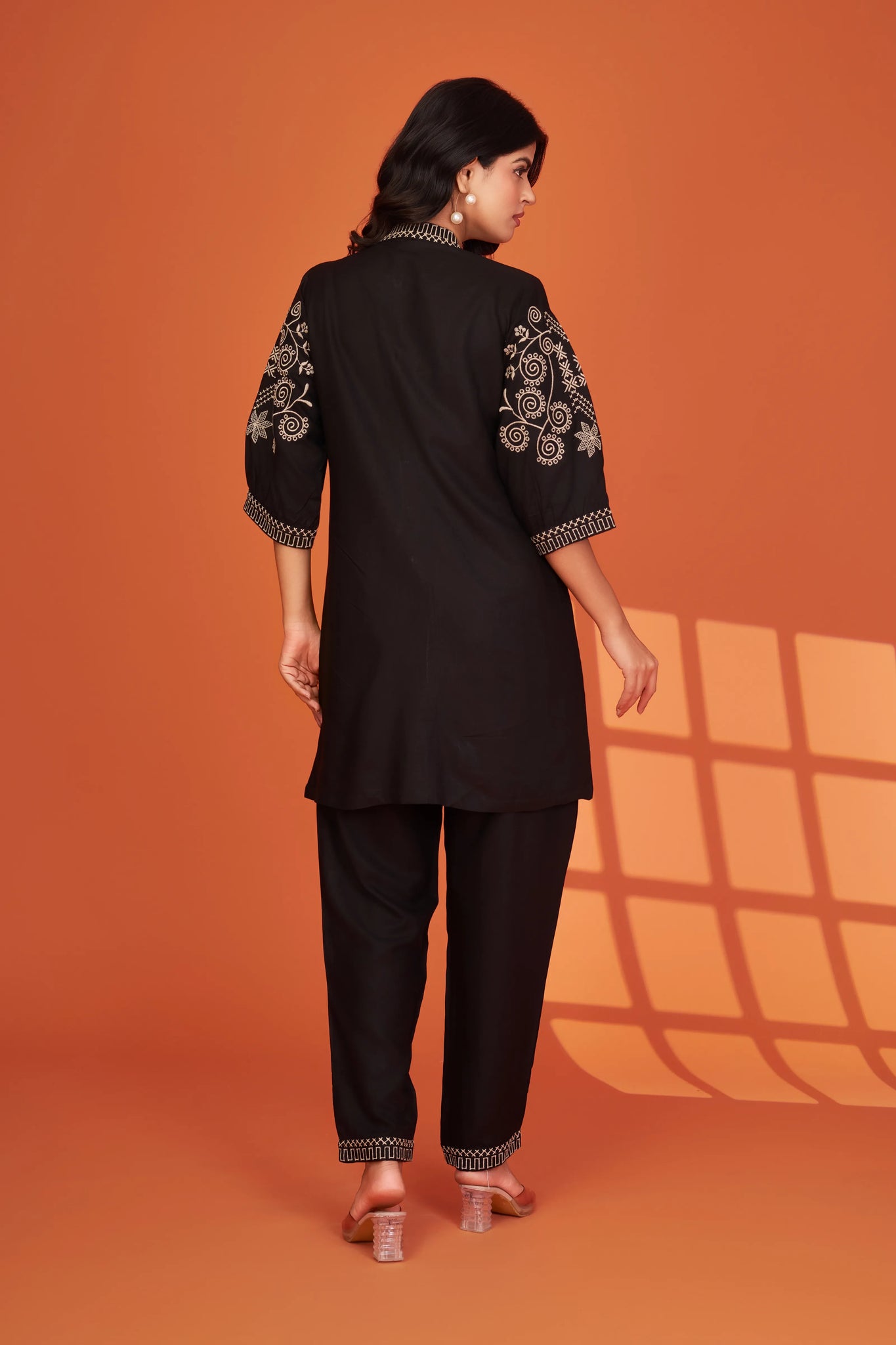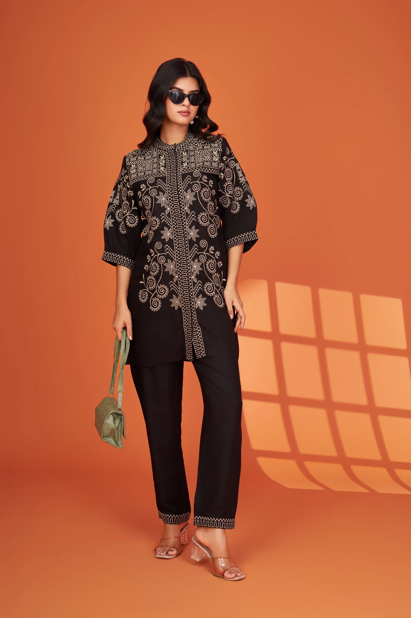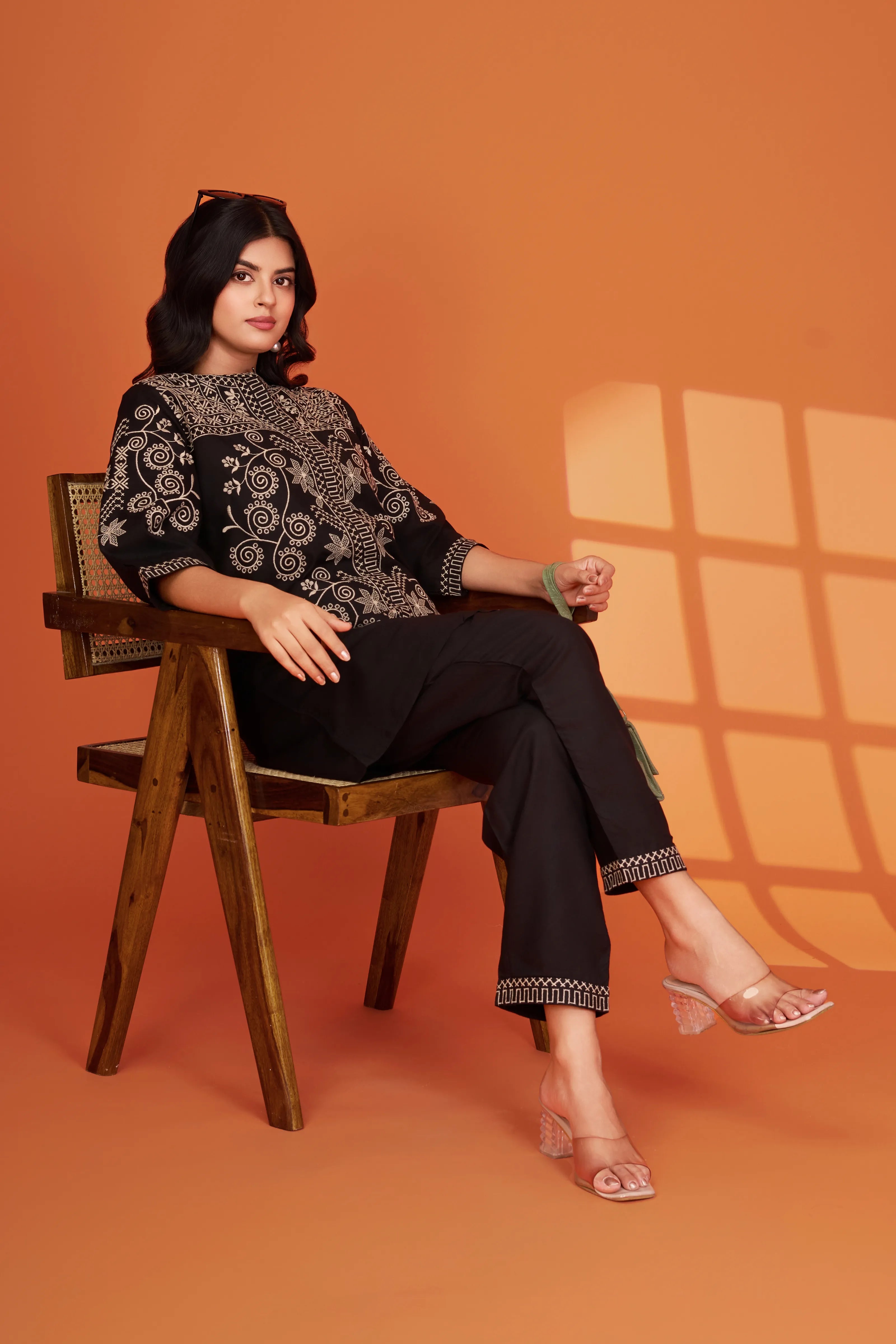 Noir Élan: Black Embroidered Co-ord Set in Cotton