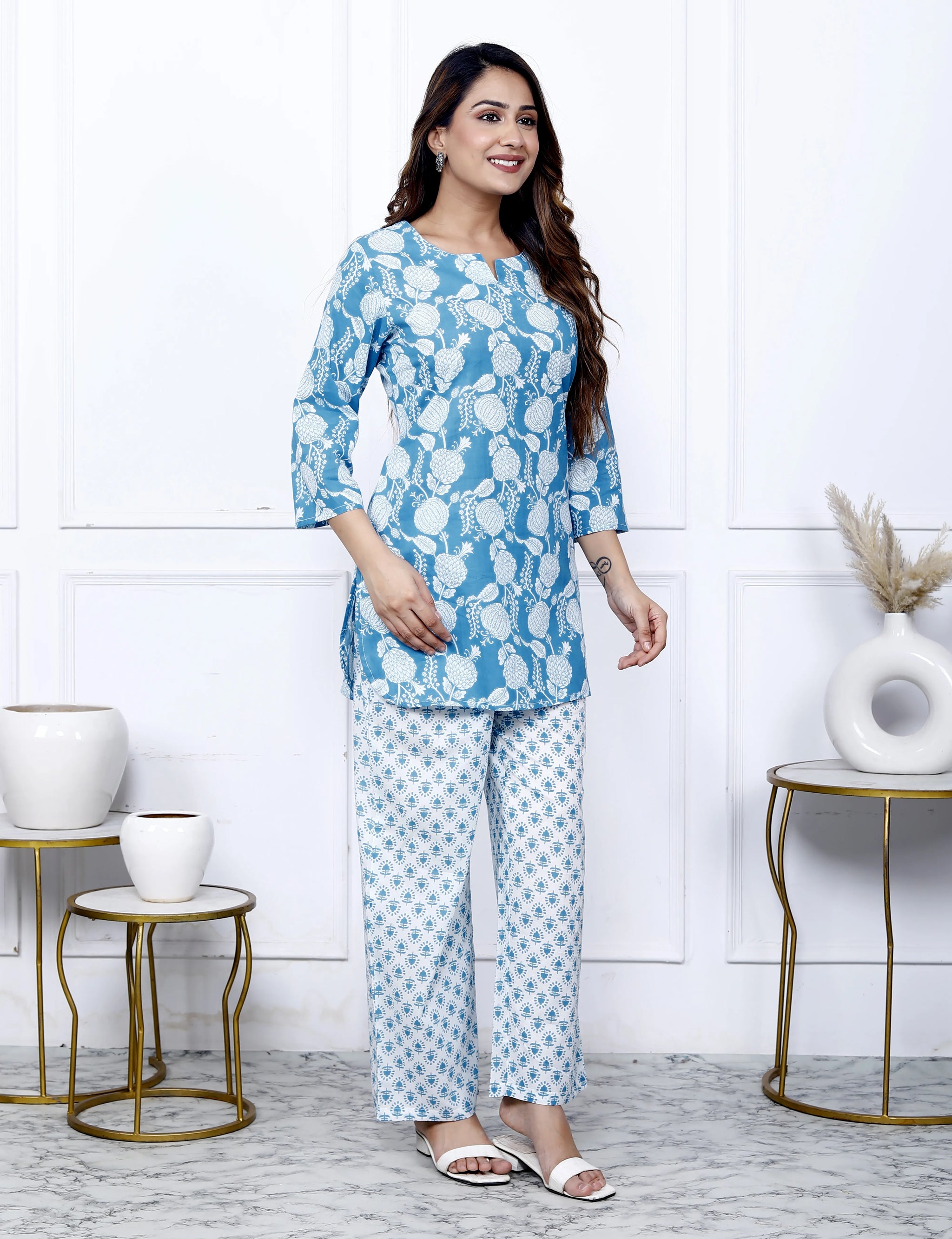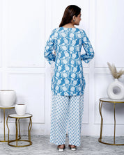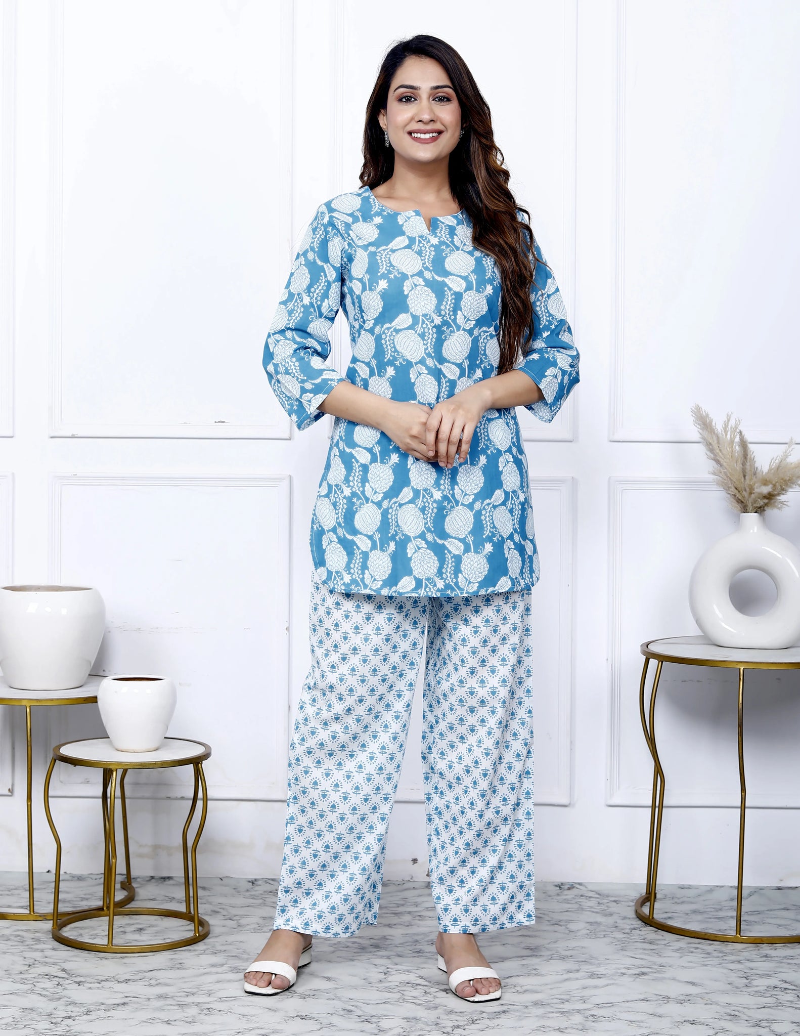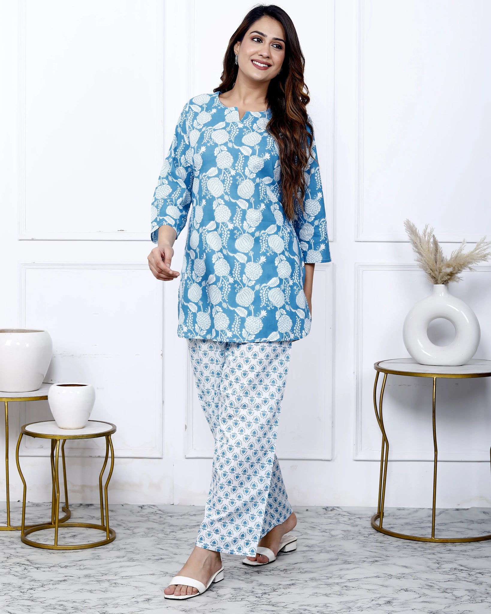 Blue Cotton Botanical Printed Kurta with Pant: A Perfect Blend of Comfort and Style