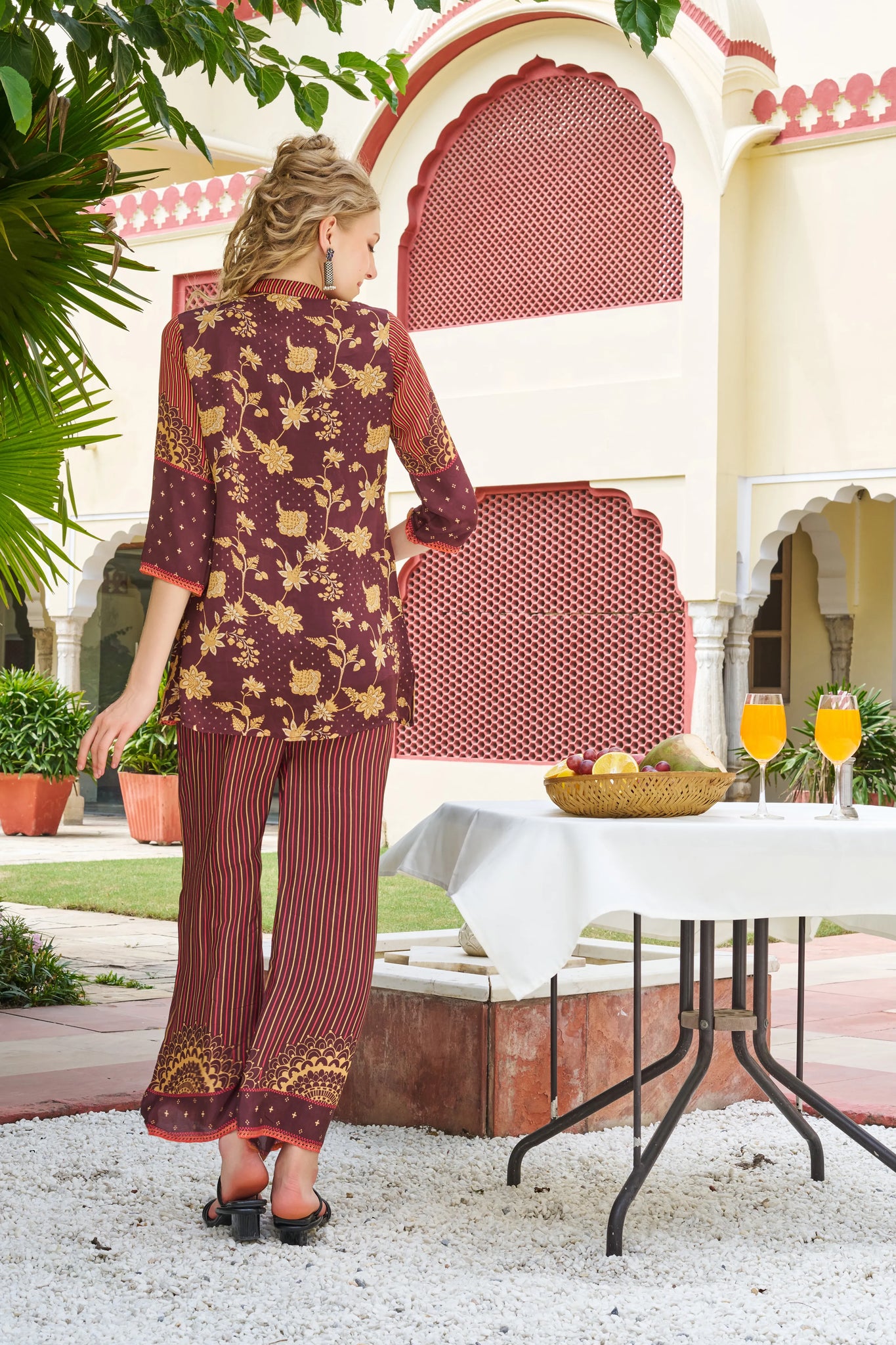 Brown Mandala & Floral Printed Crepe Co-ord Set