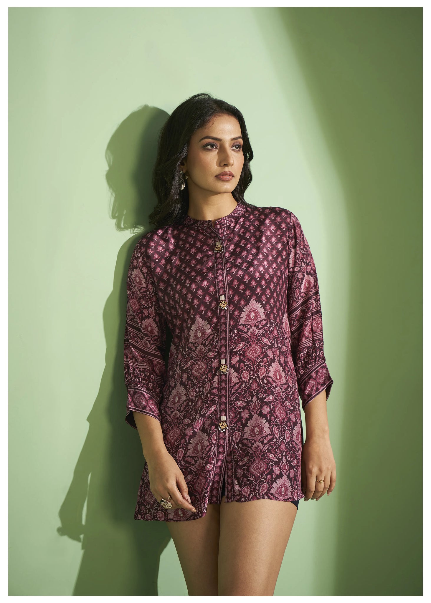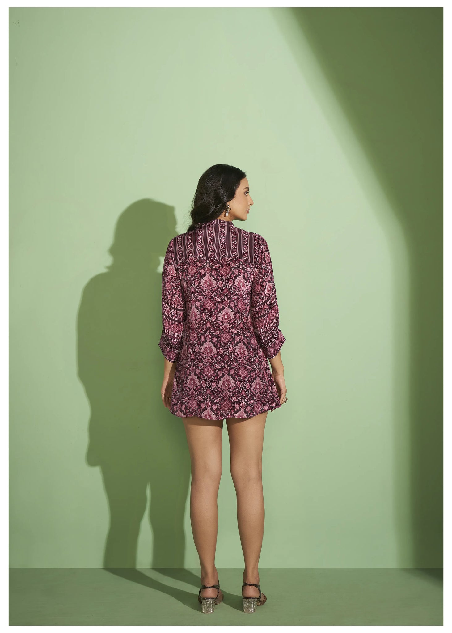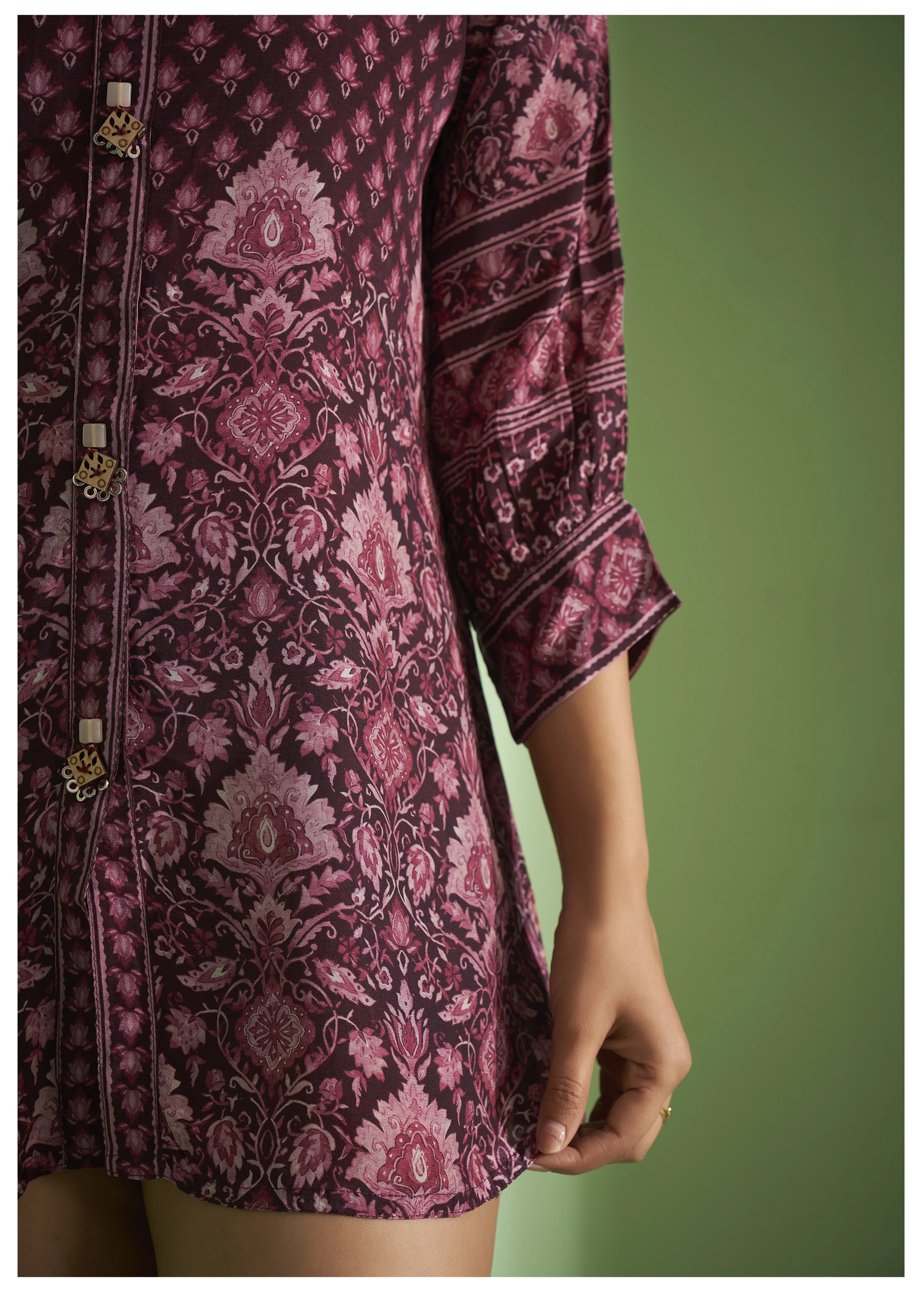 Effortless Elegance with the Dark Plum Printed Muslin Tunic