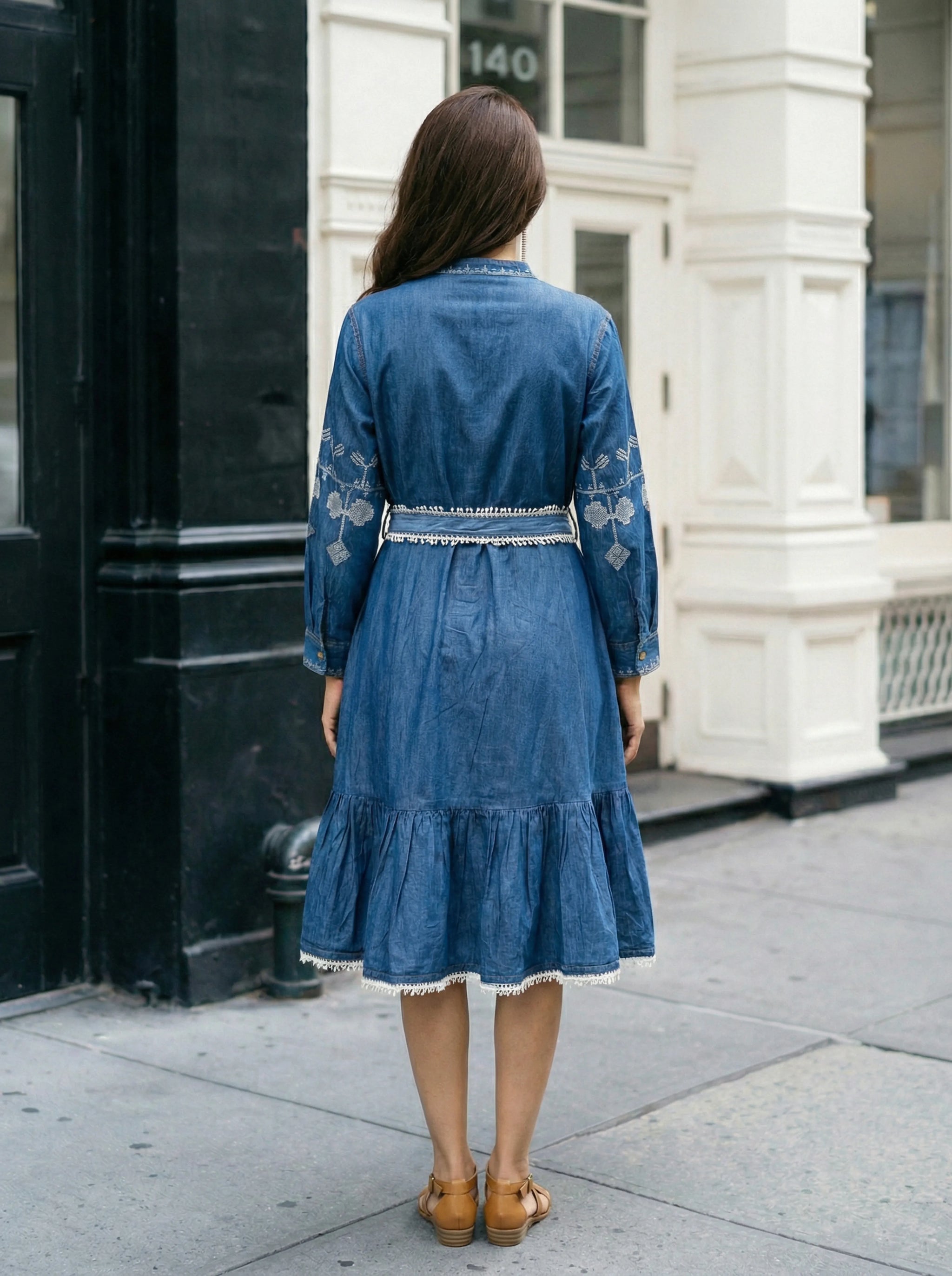 A beautiful blend of artisanal detailing and contemporary ease, Indigo Craft is designed for those who appreciate subtle craftsmanship with everyday wearability. Crafted in rich denim blue cotton, this dress brings together structure, texture, and intricate embroidery in a timeless silhouette.
