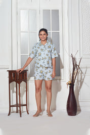 Soft & Serene: Kidist Powder Blue Floral Print Cotton Short Set