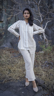 Elevate your style with the Makara Light Beige Linen Co-Ord Set, the perfect blend of sophistication and comfort. Crafted from luxurious linen, this set offers a crisp, stylish look while ensuring comfort all day long.