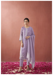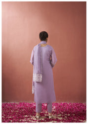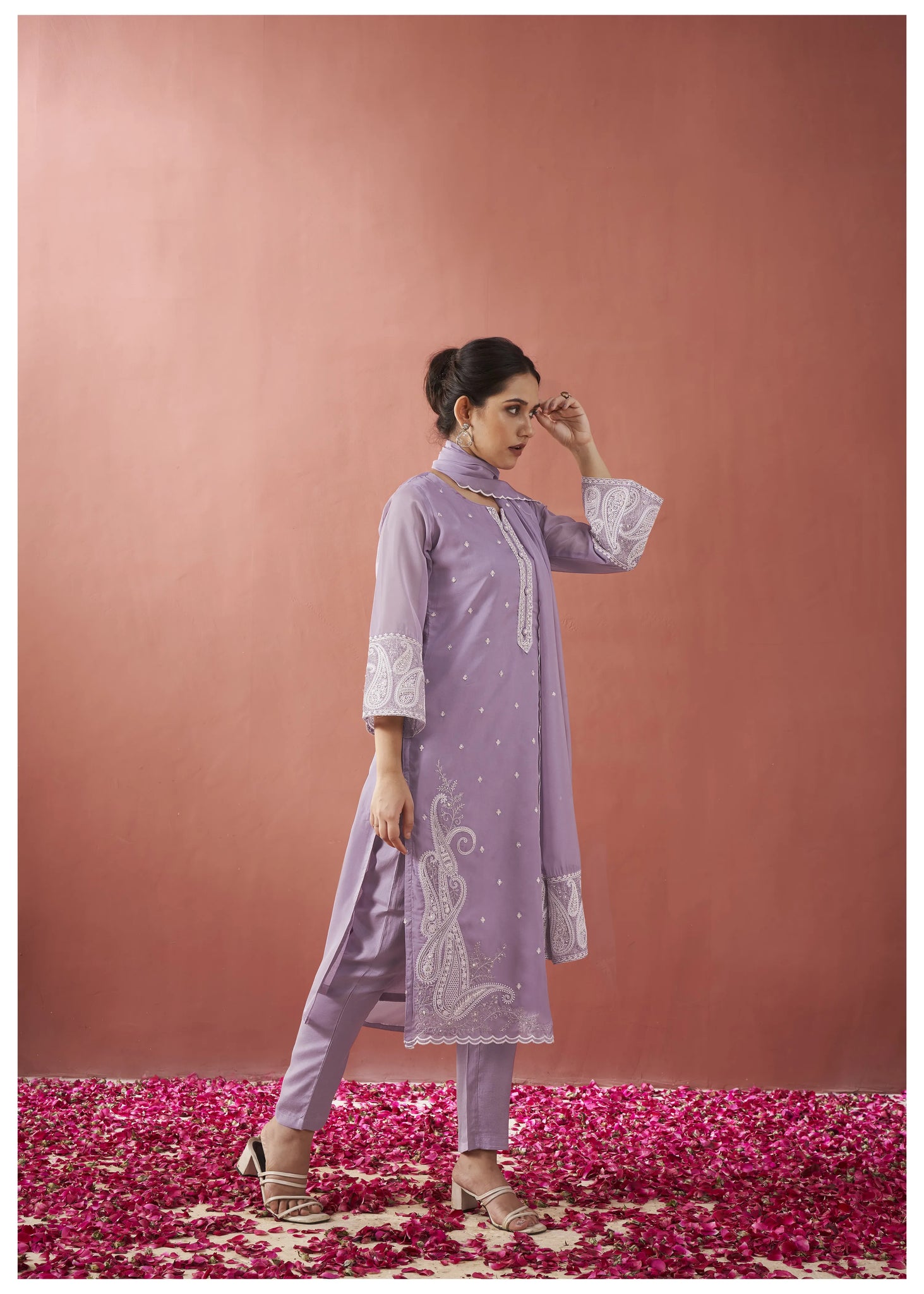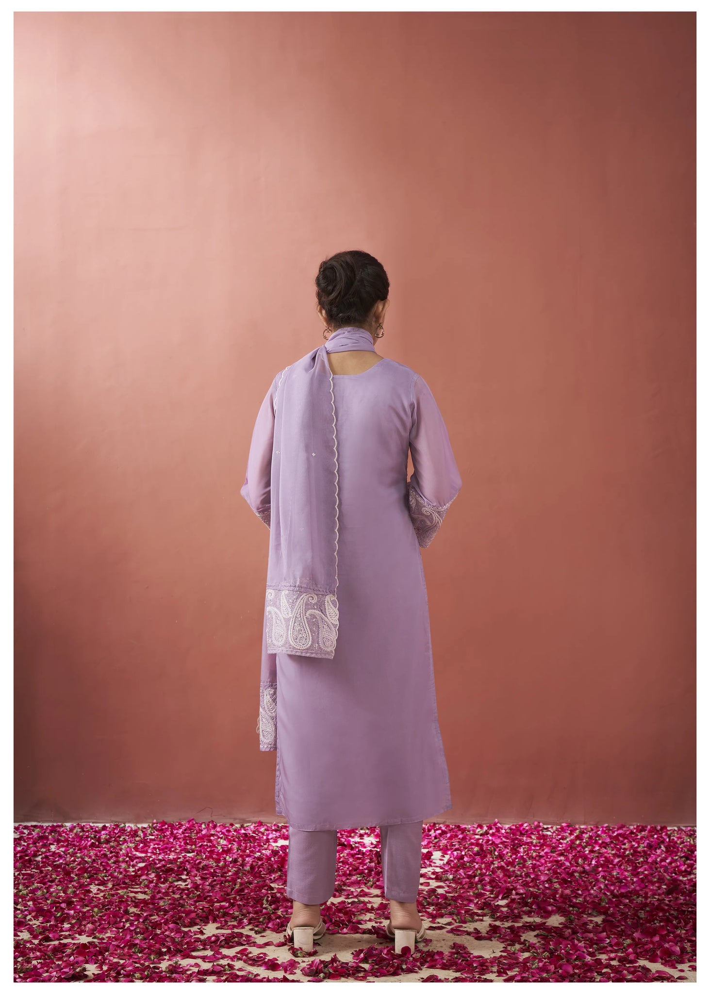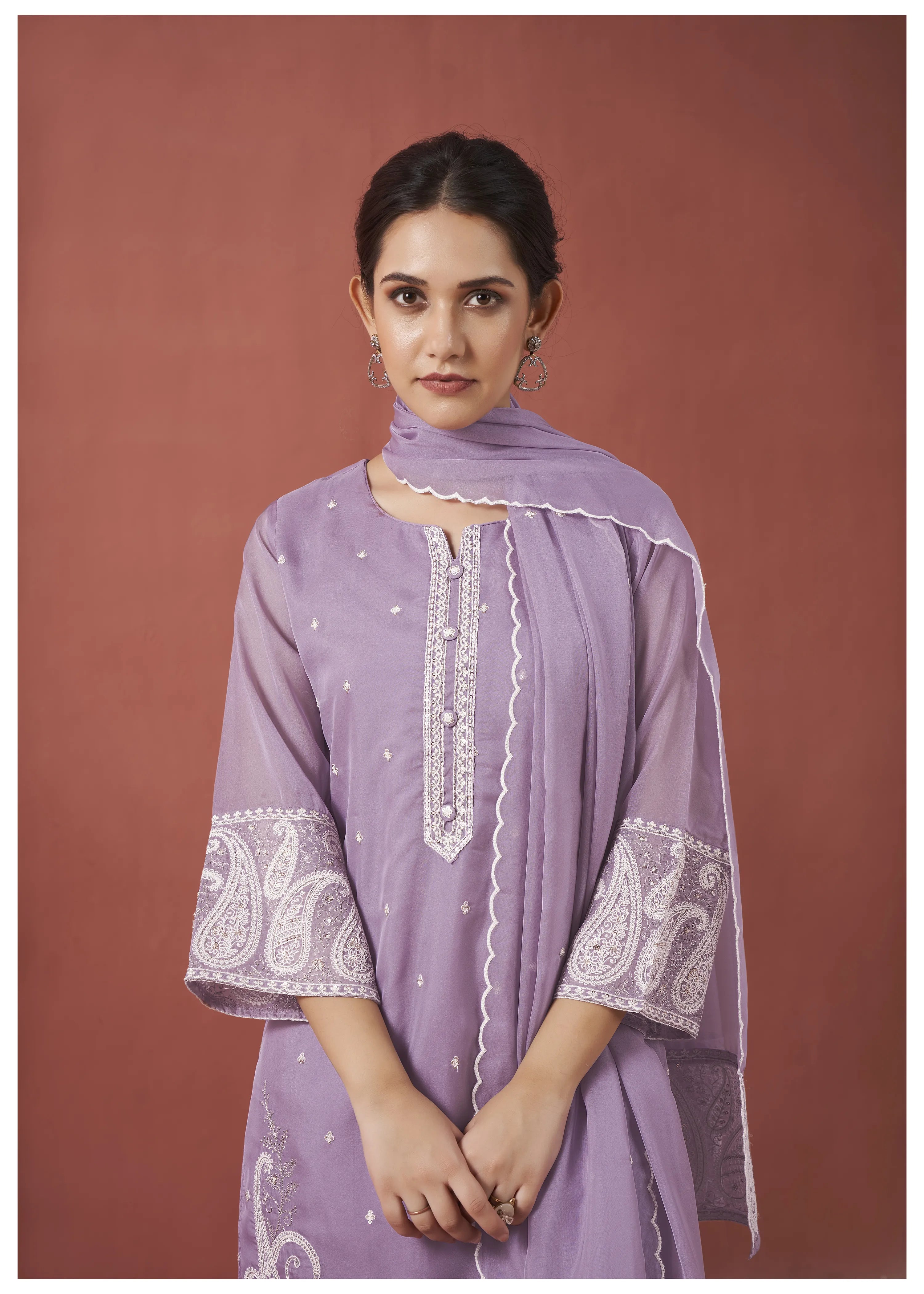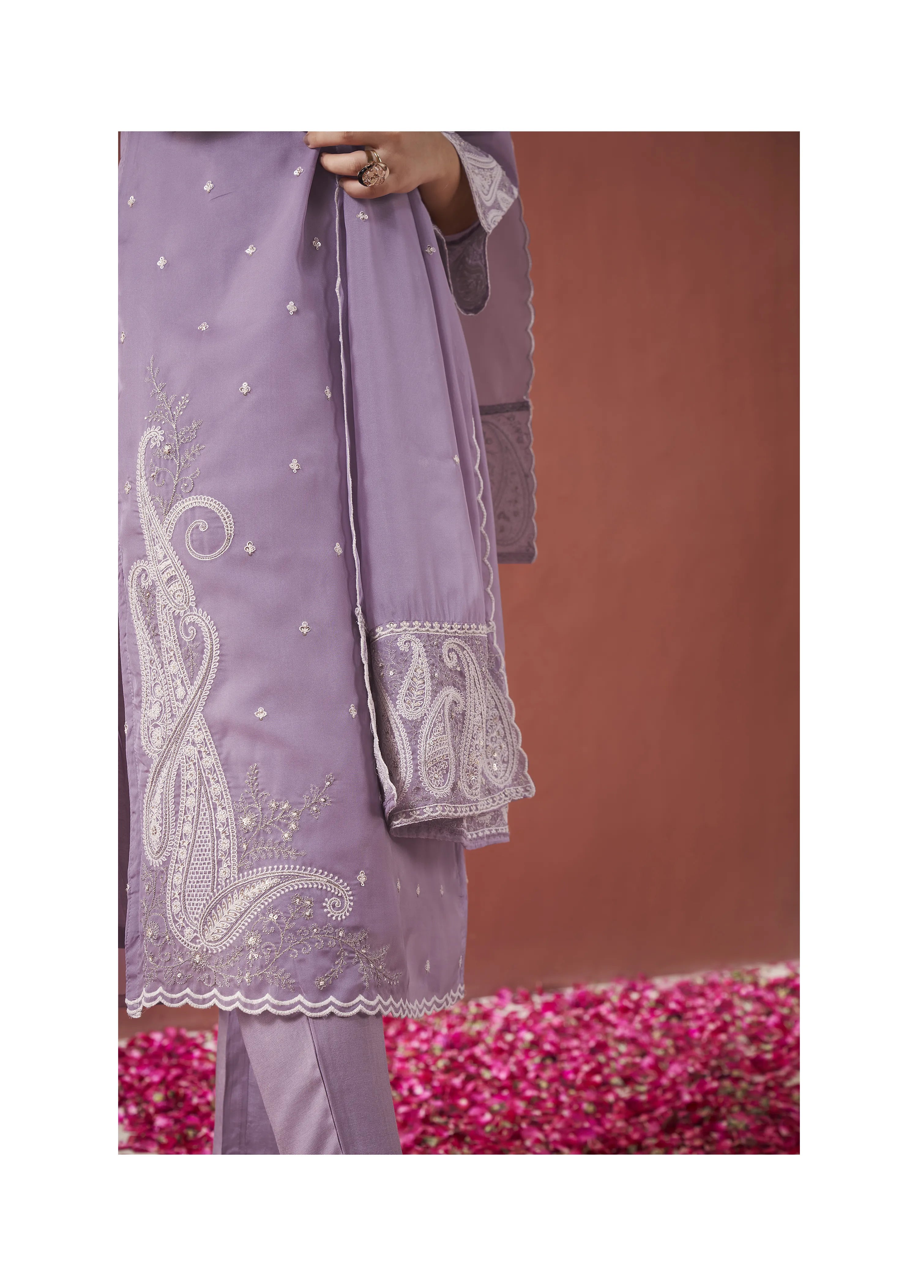 Lilac Paisley Embroidery Organza Ethnic Set with Dupatta