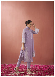 Add timeless elegance to your wardrobe with this Lilac Paisley Embroidery Organza Ethnic Set. This sophisticated ensemble features a beautifully embroidered organza kurta, classic trousers, and a delicate dupatta, perfect for festive occasions or celebratory gatherings.