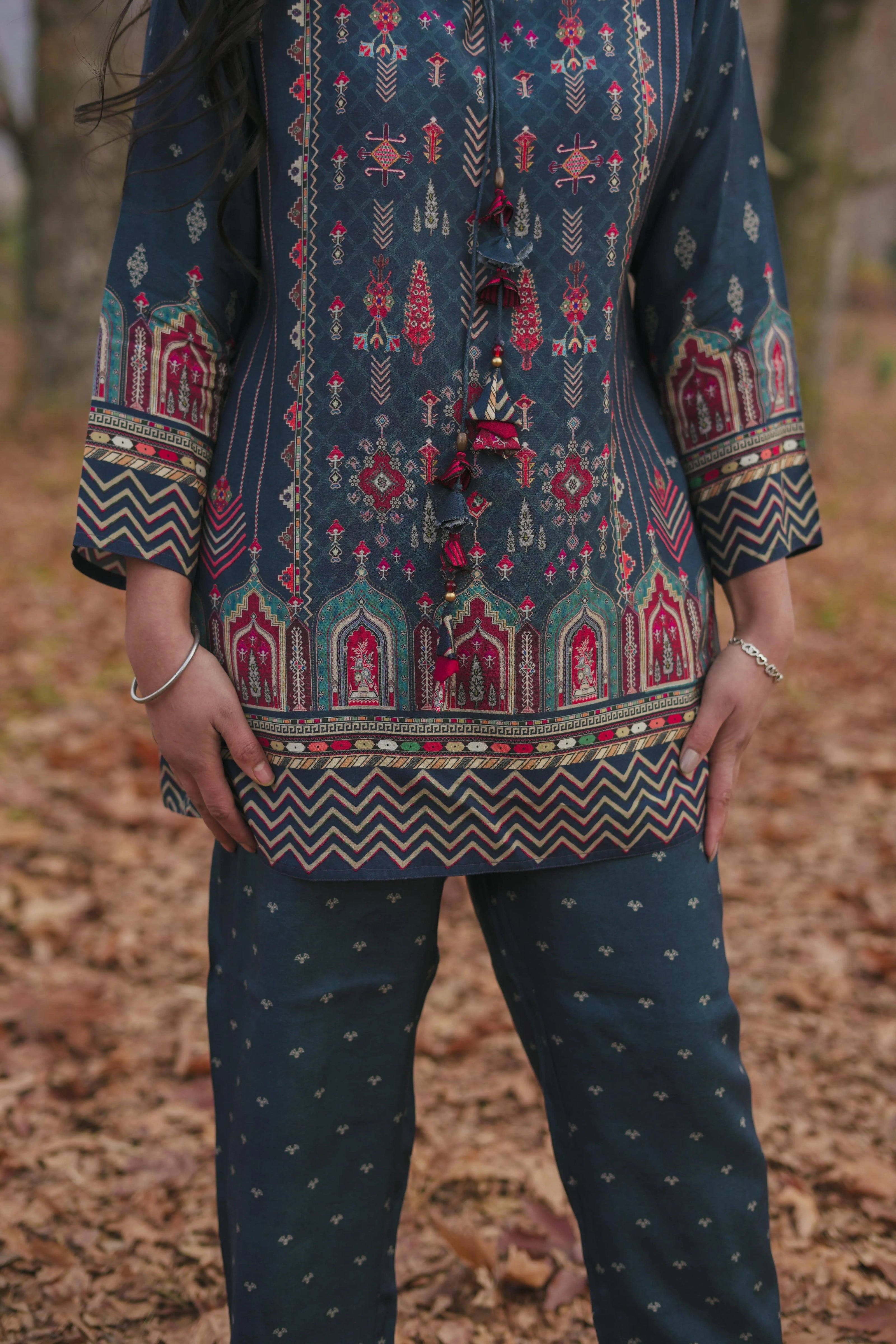 Sophisticated Style: Midnight Bloom Printed Muslin Co-Ord Set