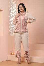 Elevate your wardrobe with this Beige Cotton Embroidered Co-Ord Set, designed for effortless elegance and all-day comfort. The intricate embroidery and relaxed fit make it a versatile choice for casual and semi-formal occasions.