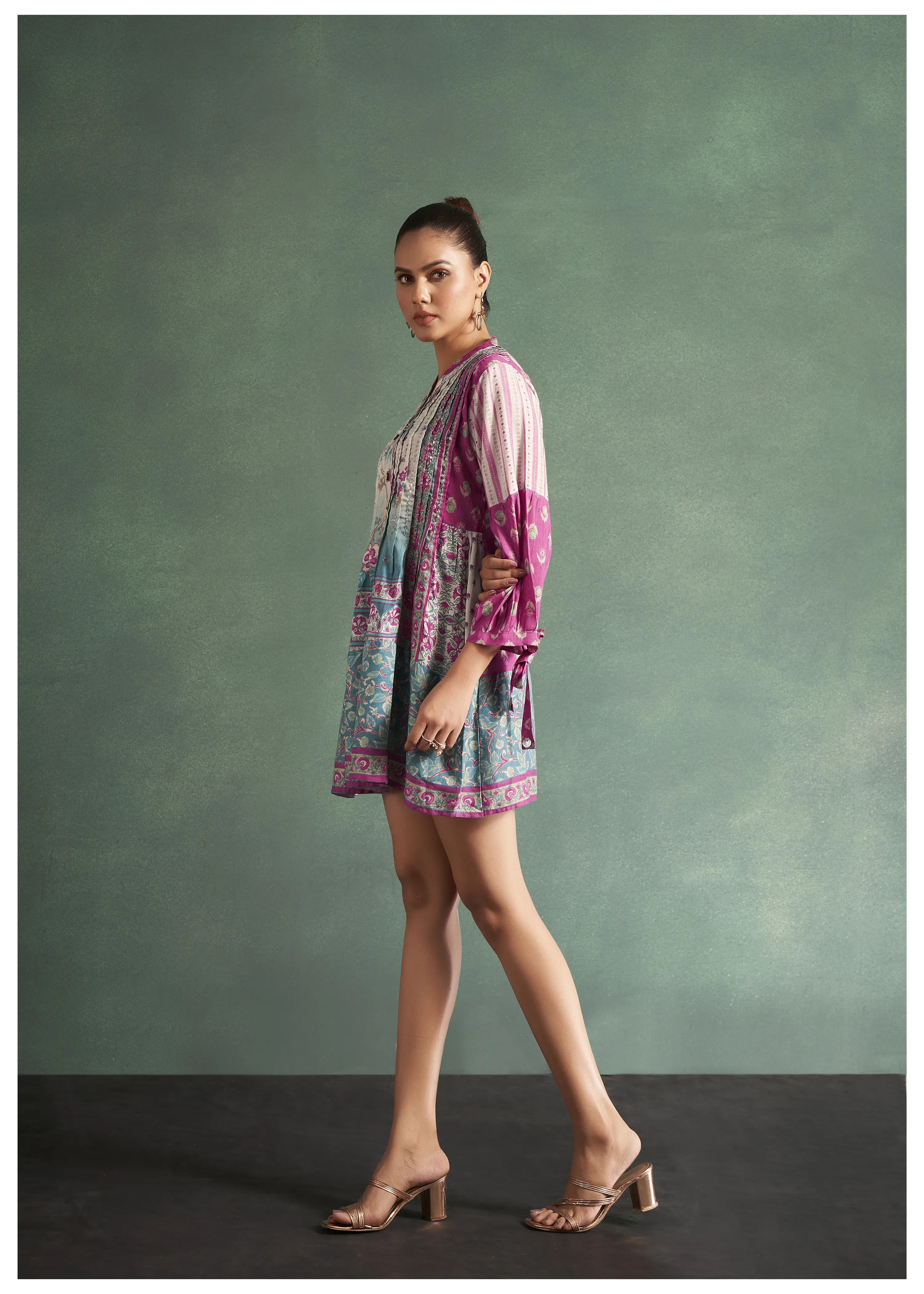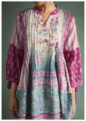 Multi-Floral Cotton Viscose Printed & Pleated Tunic
