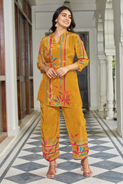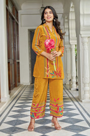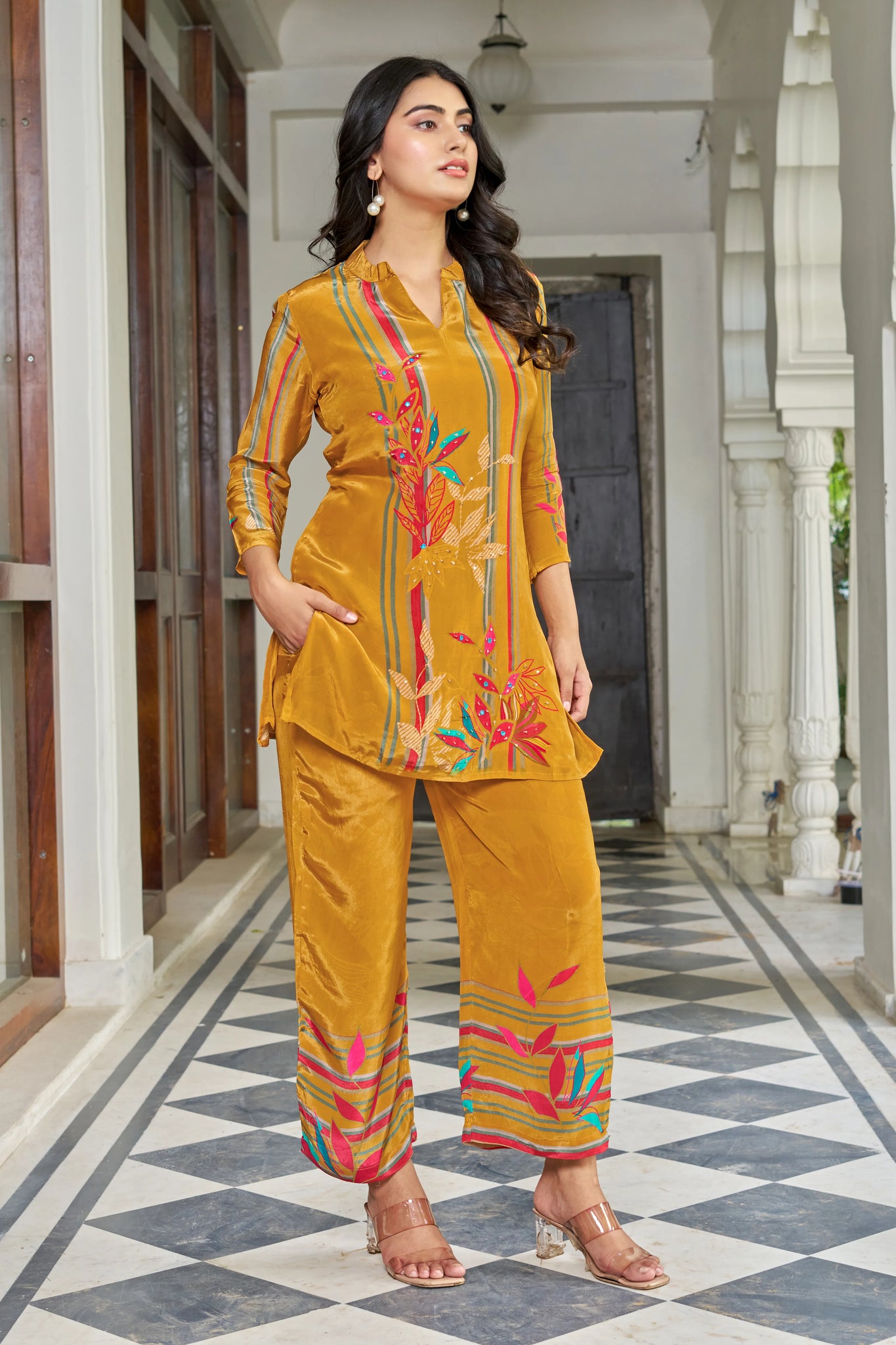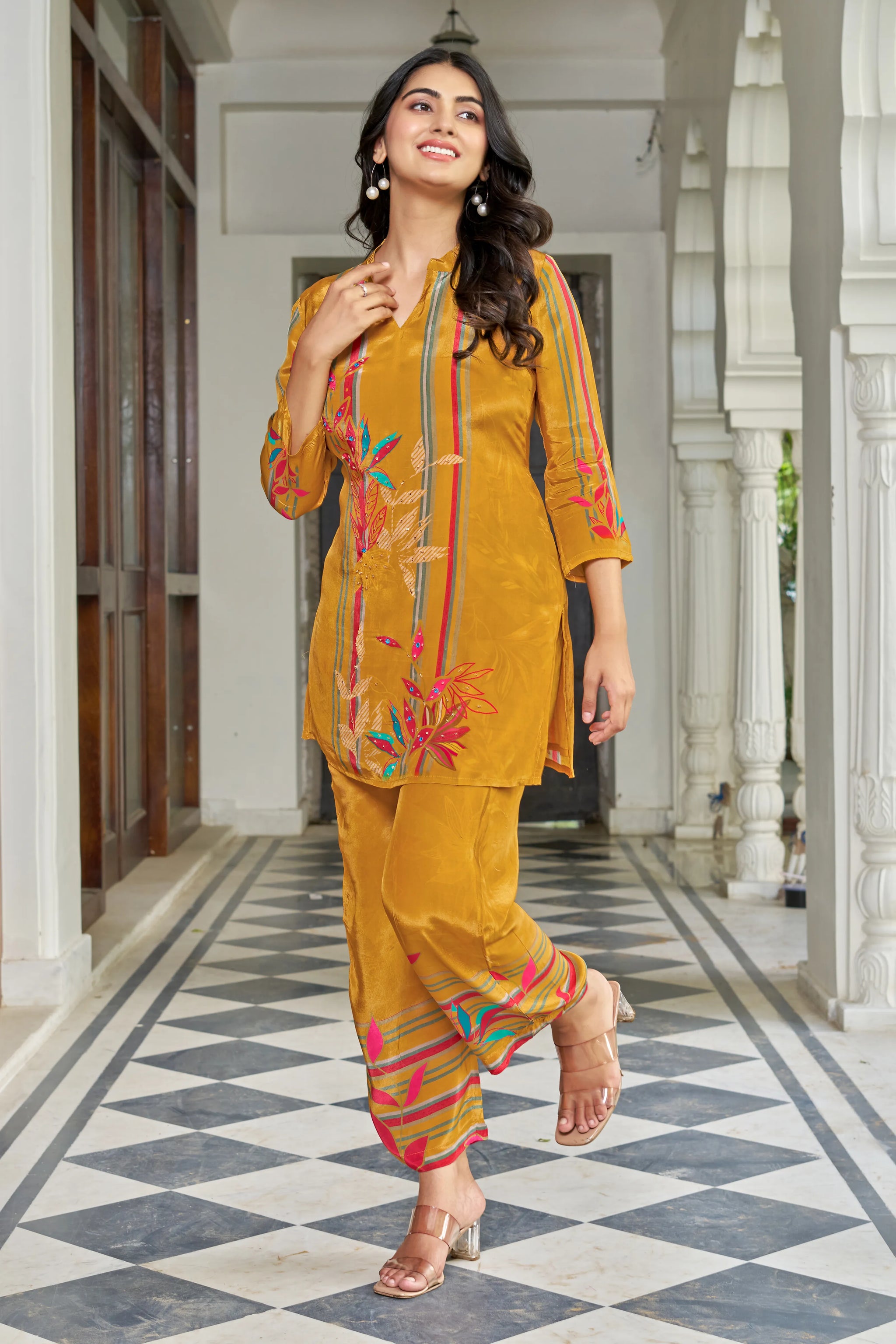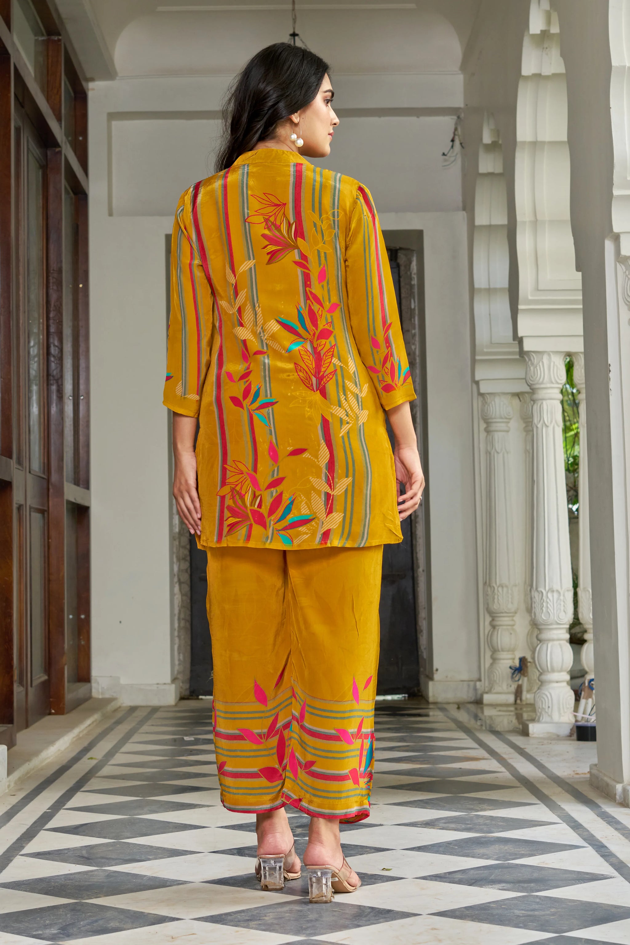 Mustard Yellow Multicolor Printed Co-ord Set in Crepe