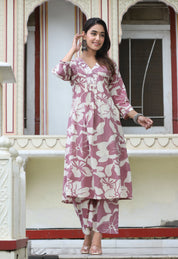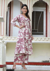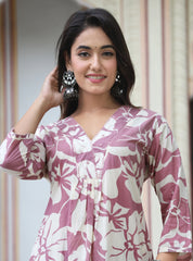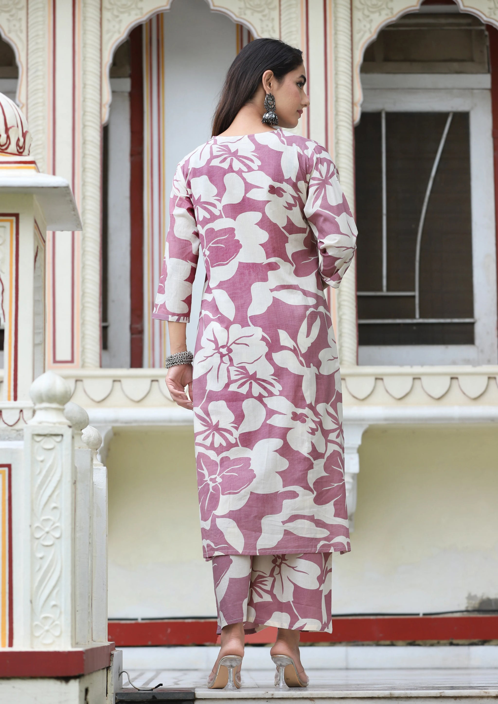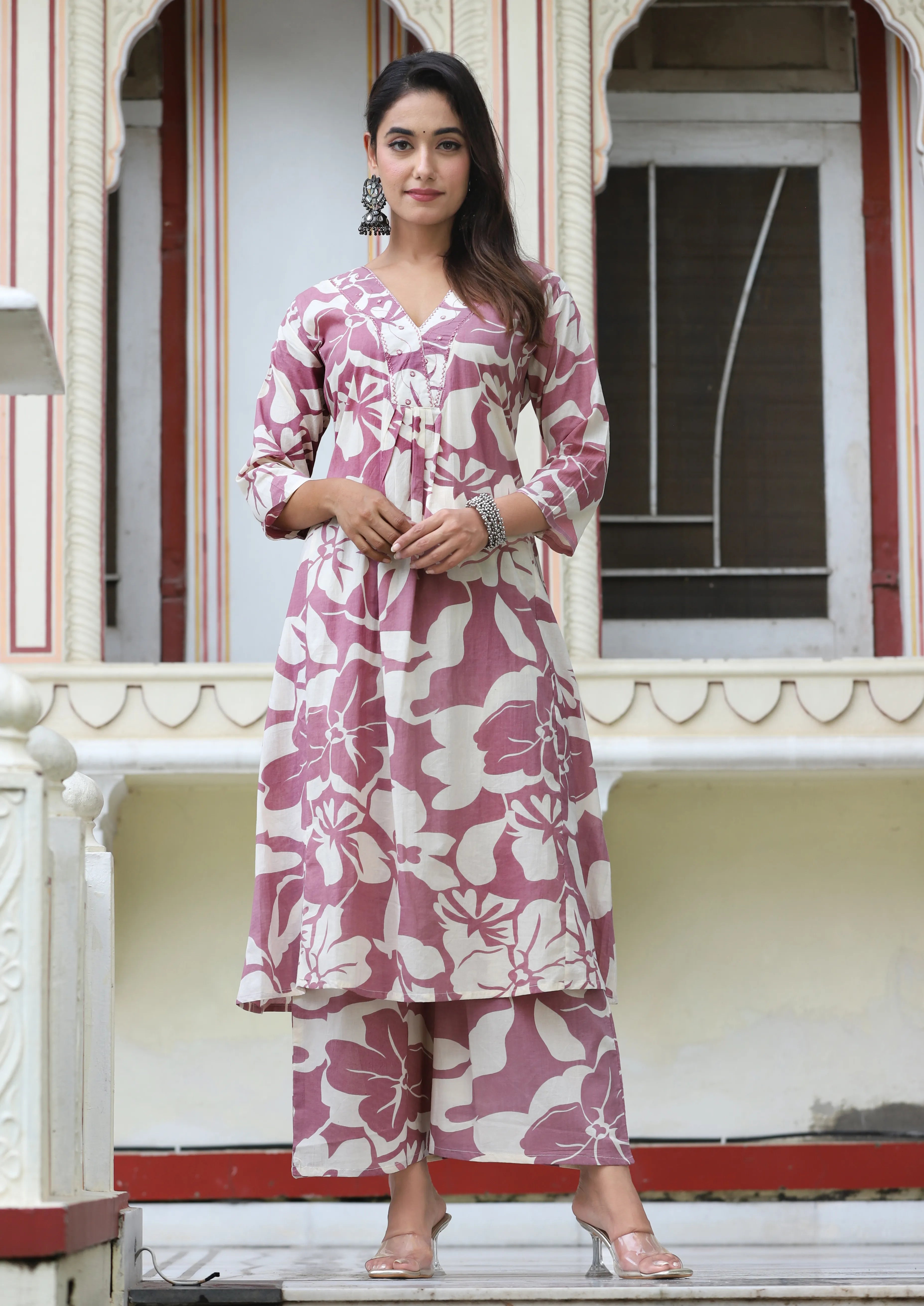 Vibrant and Stylish with the Purple Floral Printed Cotton Co-ord Set