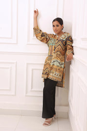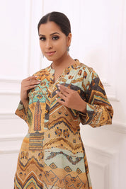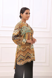 This Beige High Low Printed Muslin Tunic is the perfect blend of comfort and contemporary style. With its bold abstract print, it brings a modern, artistic vibe to your wardrobe, while the relaxed fit keeps you comfortable all day.