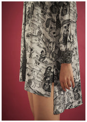 Effortlessly Chic: White and Black Printed High Low Muslin Tunic
