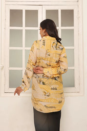 Yellow Printed Shirt-Style Tunic with Embellishment